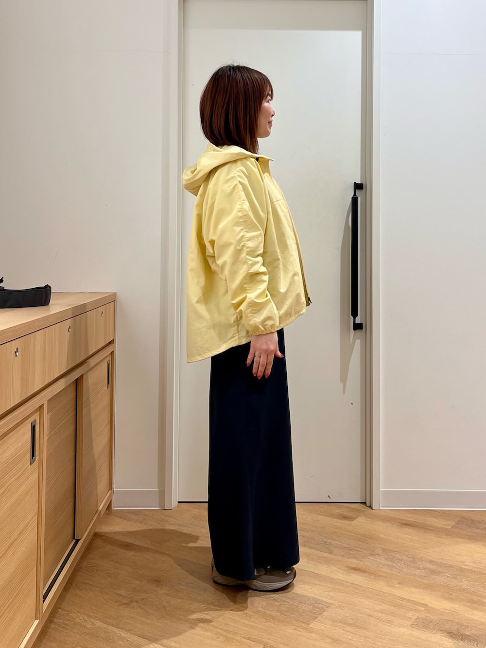UVカット機能のアウターに歩きやすいスニーカーを合わせました。
