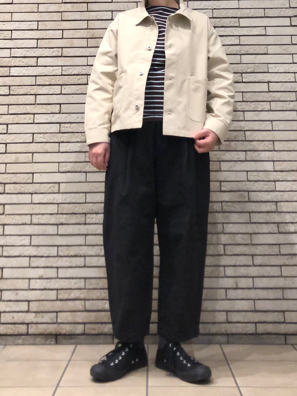 今回はボーダーに羽織ってシンプルな大人カジュアルに。ぜひお試しくださいませ💐