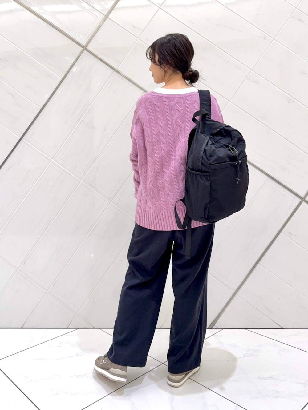 シンプルなデザインなので普段のアイテムに合わせやすく、着回しの効くアイテムです。