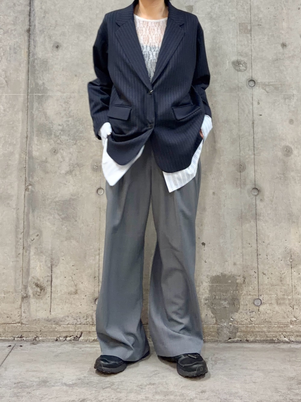 パンツはSサイズ着用でスニーカーを合わせてやや引きずる丈感でした。