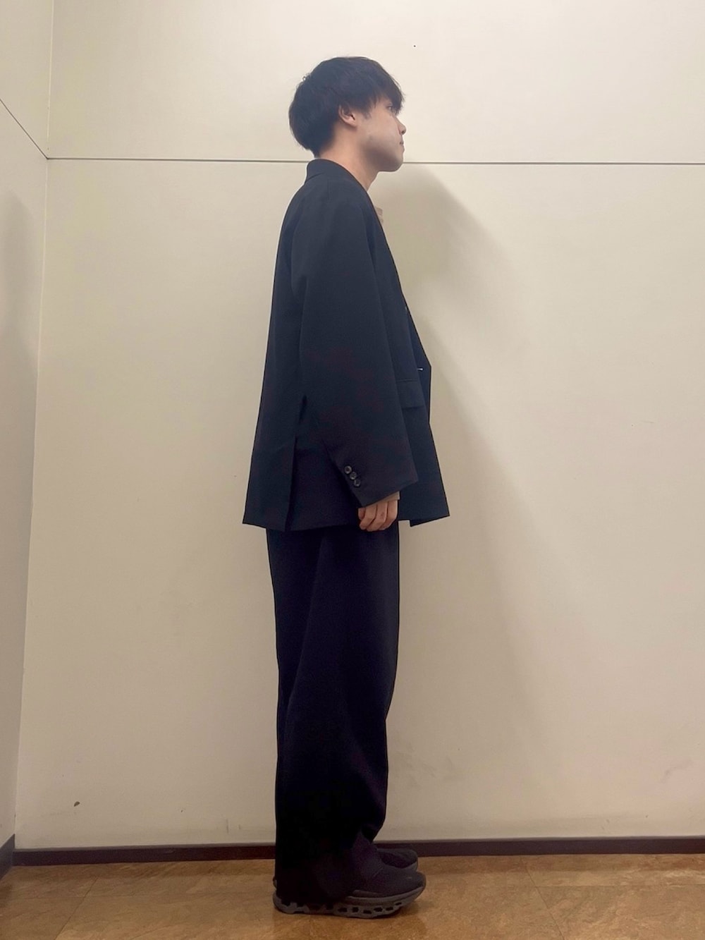 シンプルになりがちなジャケットスタイルですが、インナーの素材感をひと癖つけることで差別化できますよ〜!