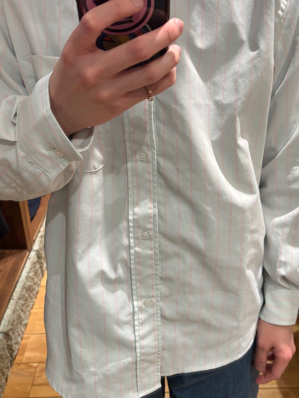 よーく見ると縦シマストライプのシャツです。