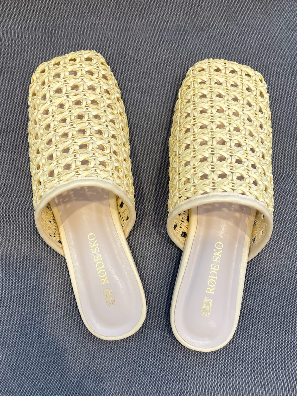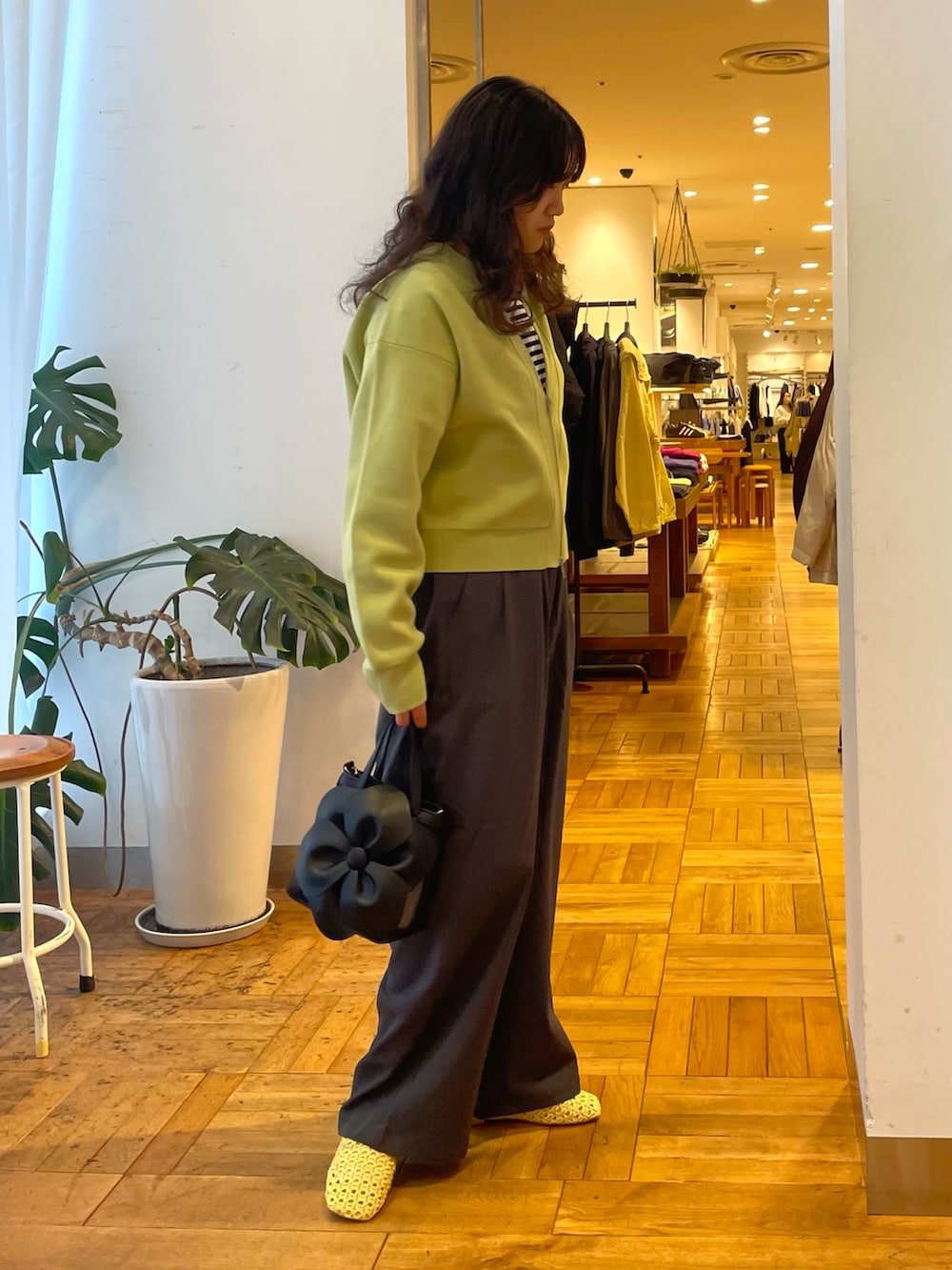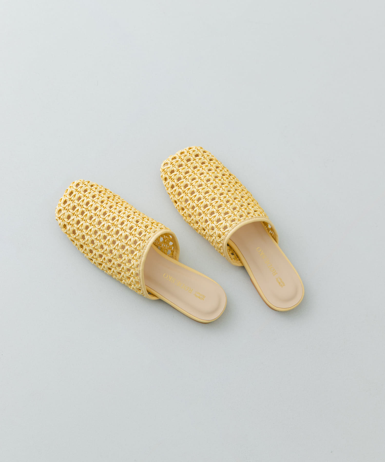 足元は春らしいイエローのメッシュ素材をチョイス。