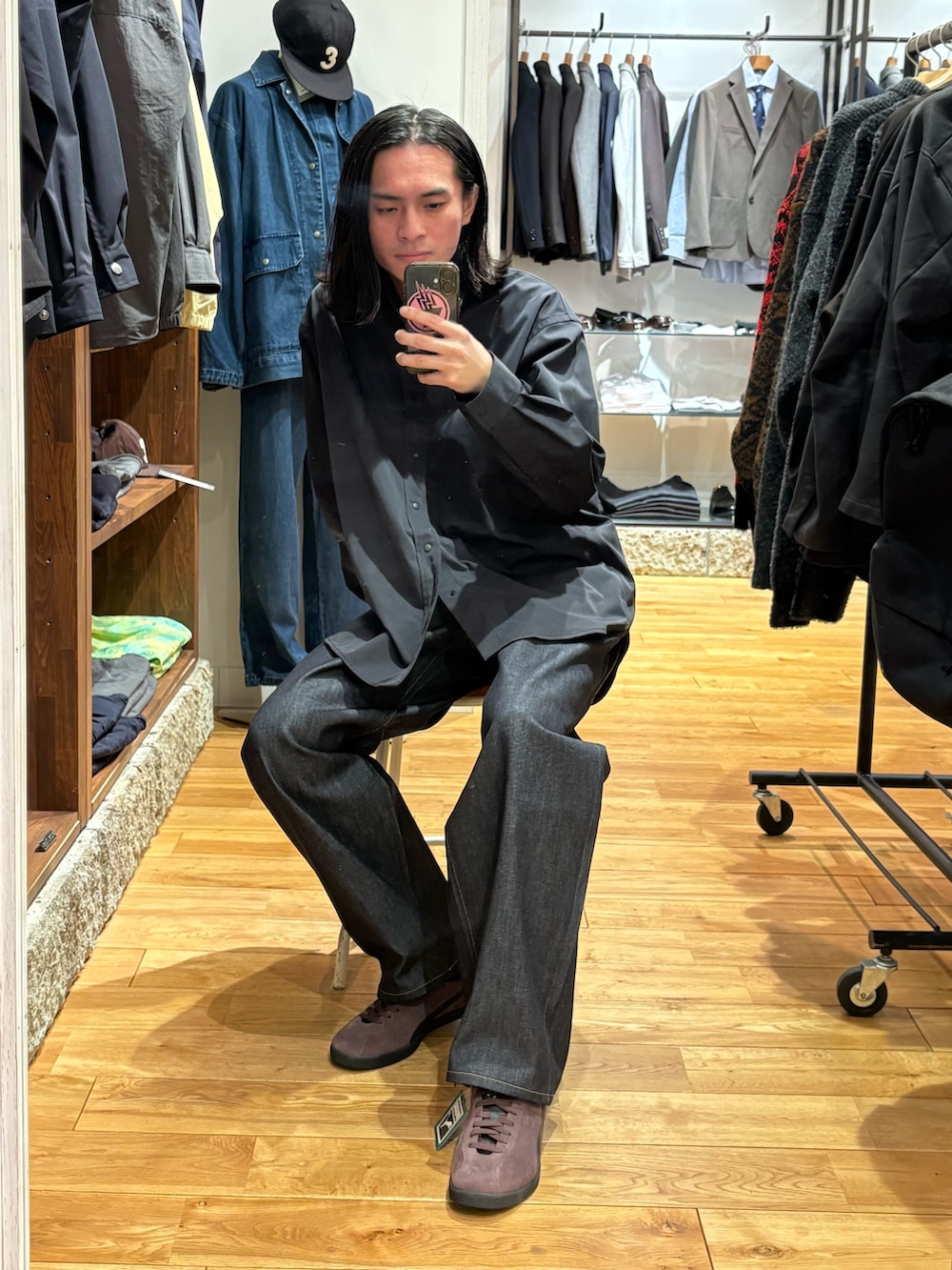 solotexツイルのシャツにUR別注Leeのカウボーイパンツで綺麗に整えたスタイルです。