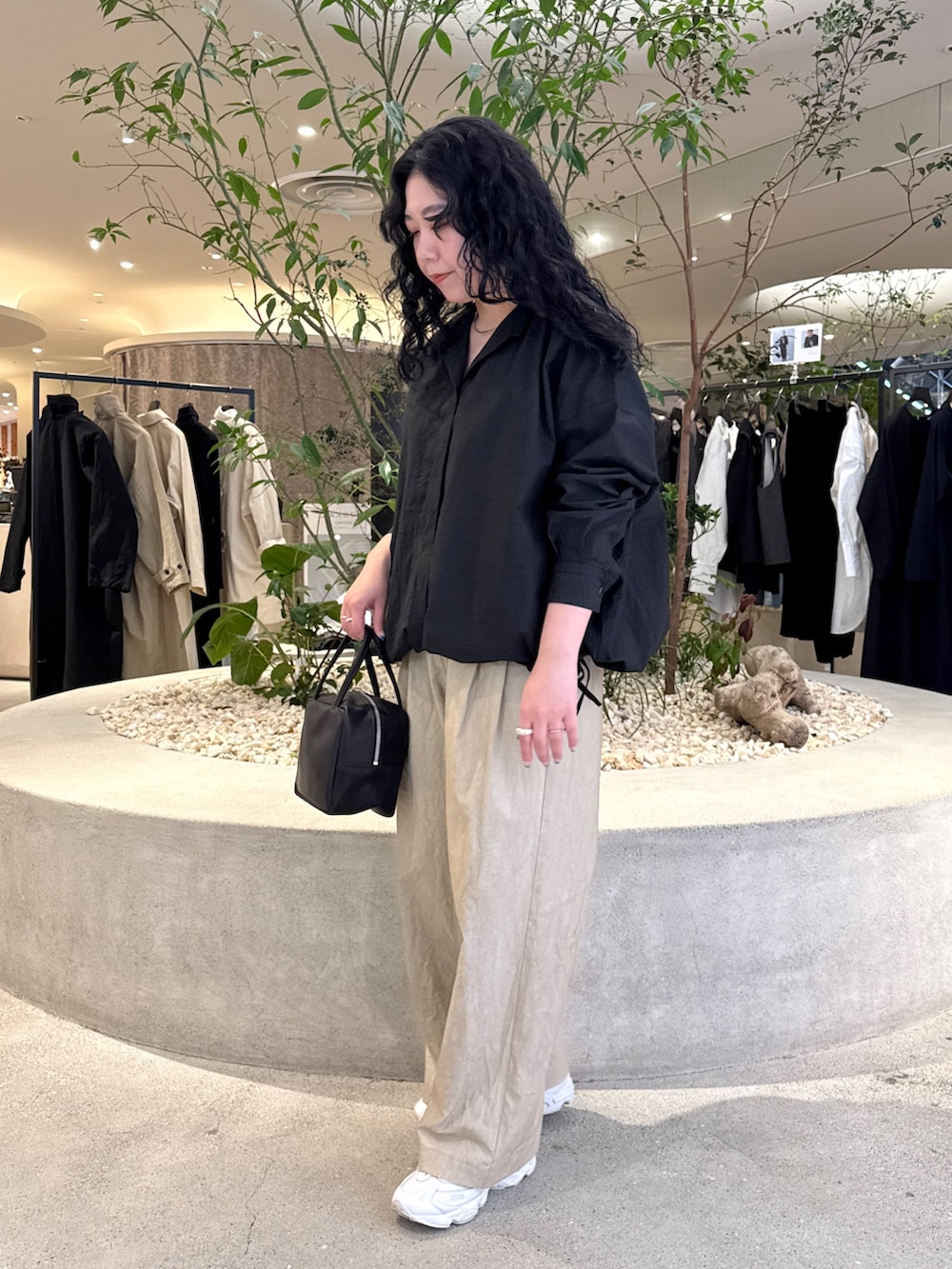 トップスと同じく少しハリ感のある生地のパンツは、普段着や同素材でご用意じているジャケットと合わせて少しきちんと感も出せるので良くオススメさせて頂いてるアイテムです♪