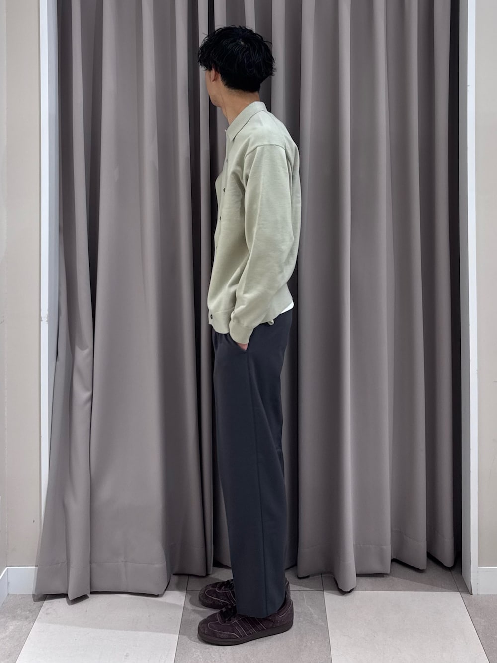 若干身幅広めのシルエットに加えて、サイドにはポケットがあったりとパッと羽織るのにオススメです。
