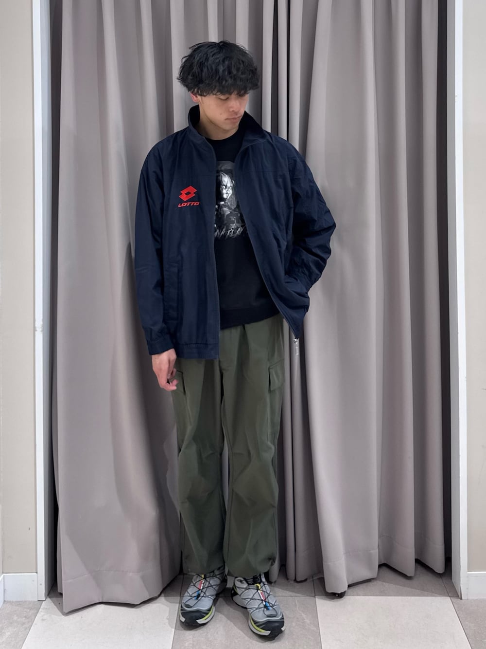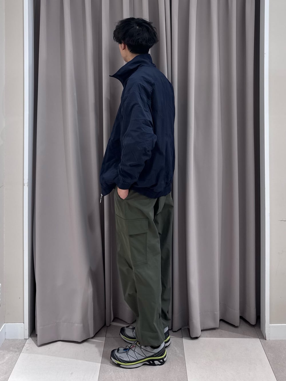 春先にピッタリのナイロン生地のブルゾン。カーゴパンツとの合わせも👍