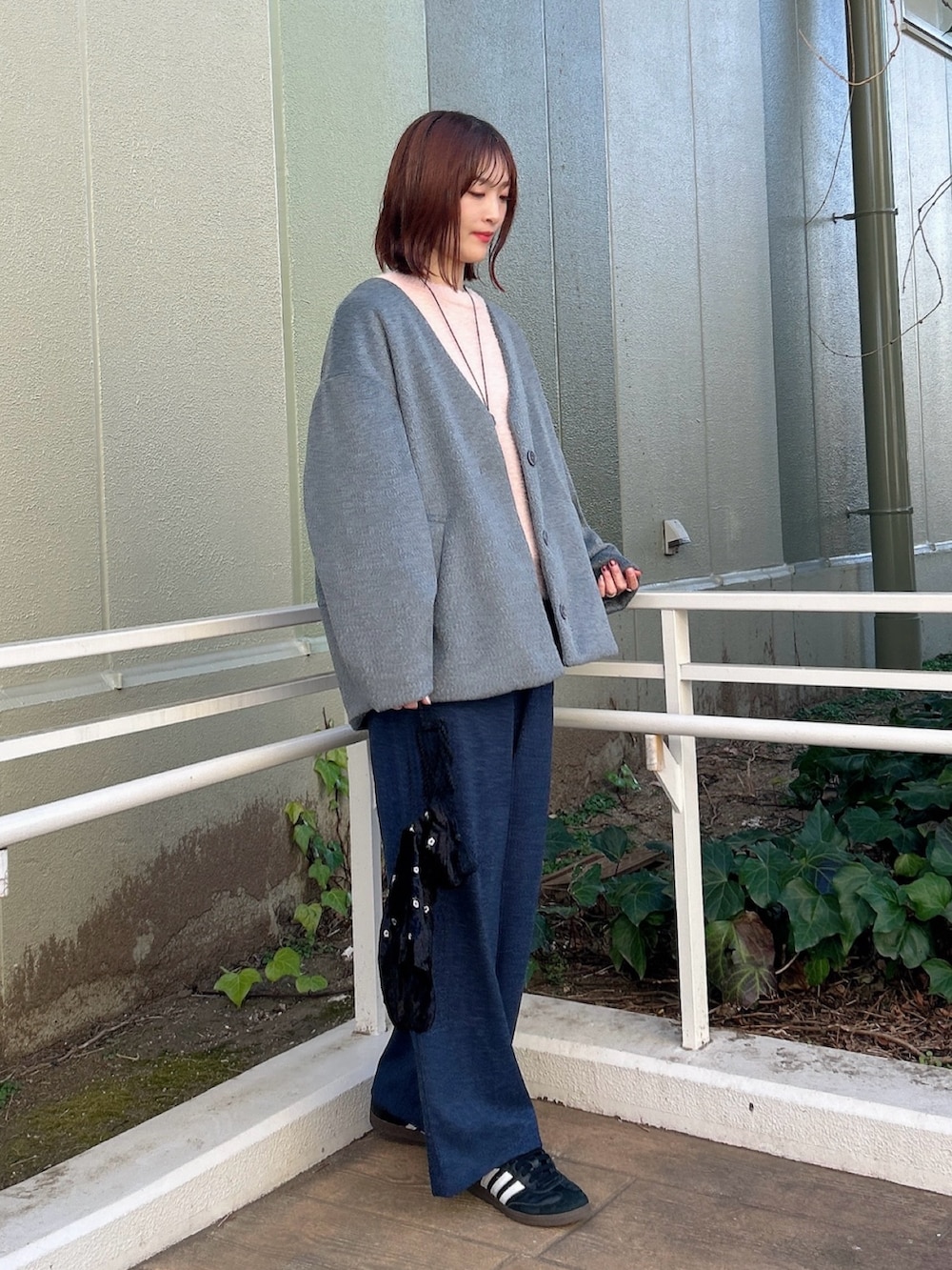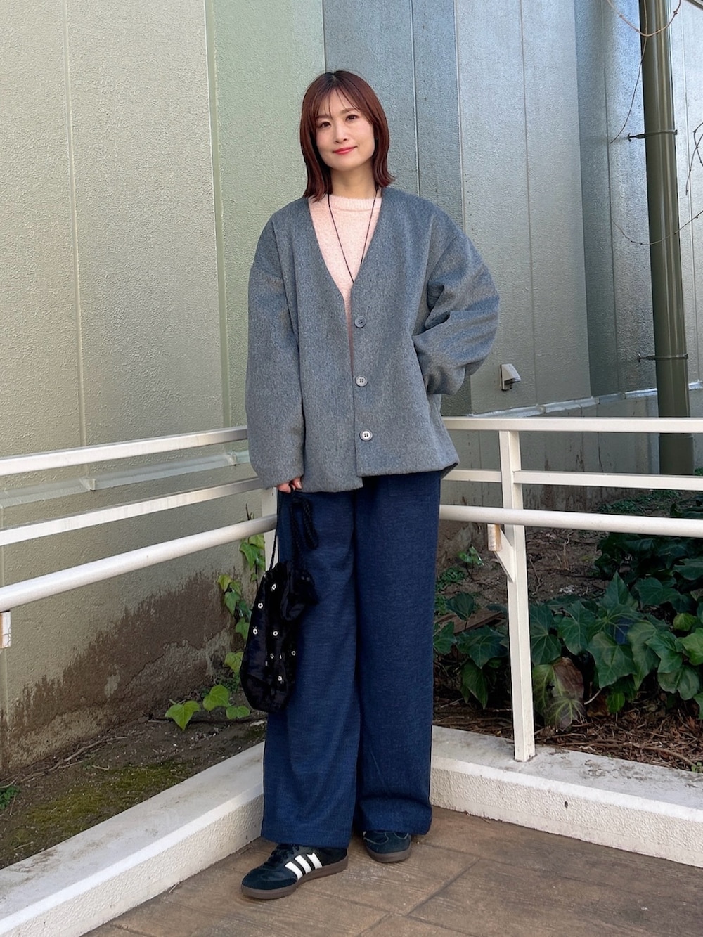 軽いのでサッと羽織れて、ゆったりコクーンシルエットです。