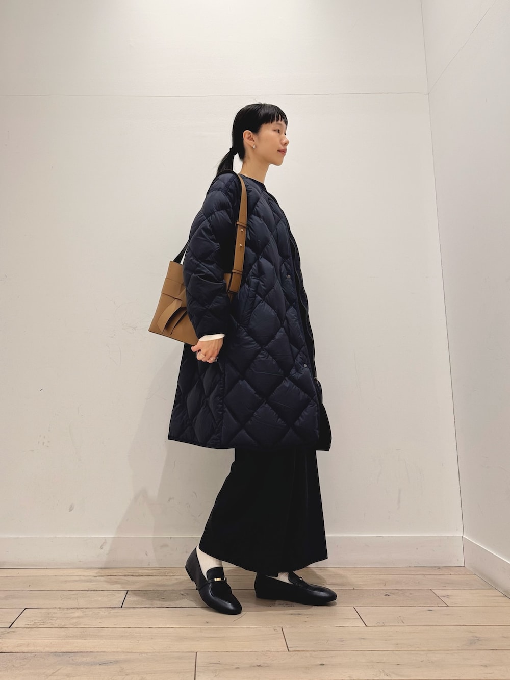 こちらは9部丈のワイドパンツなので、低身長さんでもちょうどよく履きやすいです☺️高身長の方は足首見せてスッキリ見えできます◎