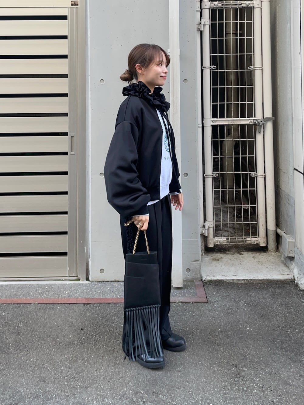 スポーティな素材感と、フリルデザインが一癖が可愛らしいセットアップです!