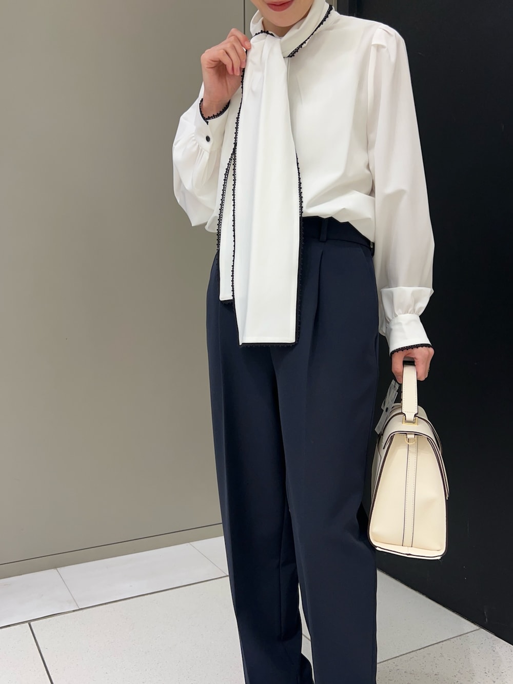 『WEB/一部店舗限定』トリミングボウタイブラウス
