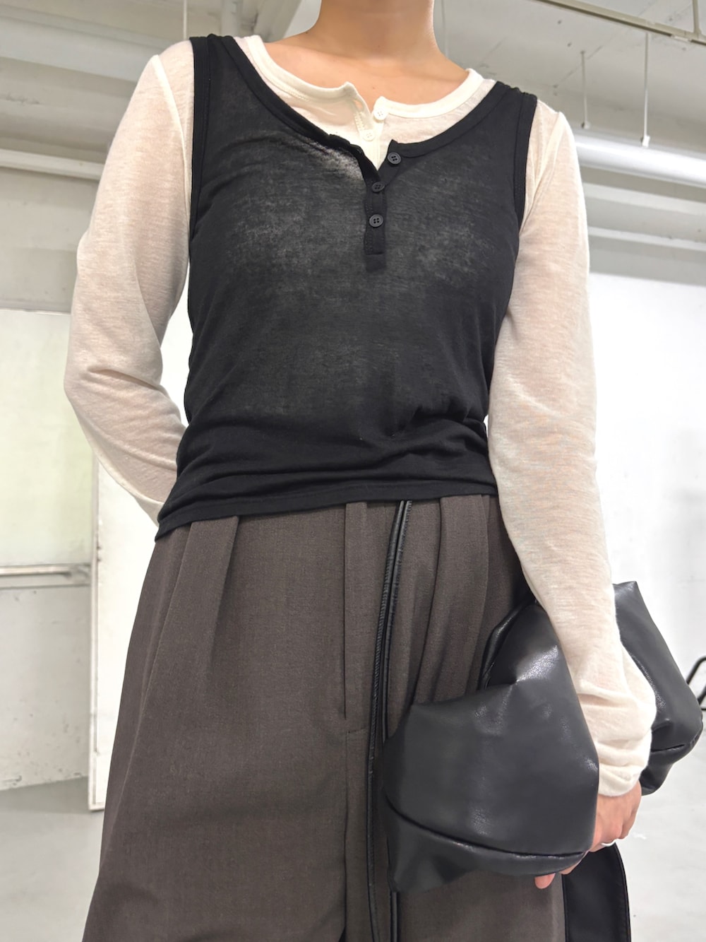 レイヤードヘンリーネックTEE