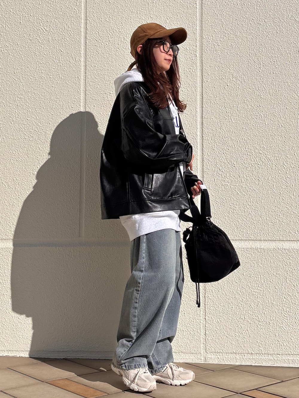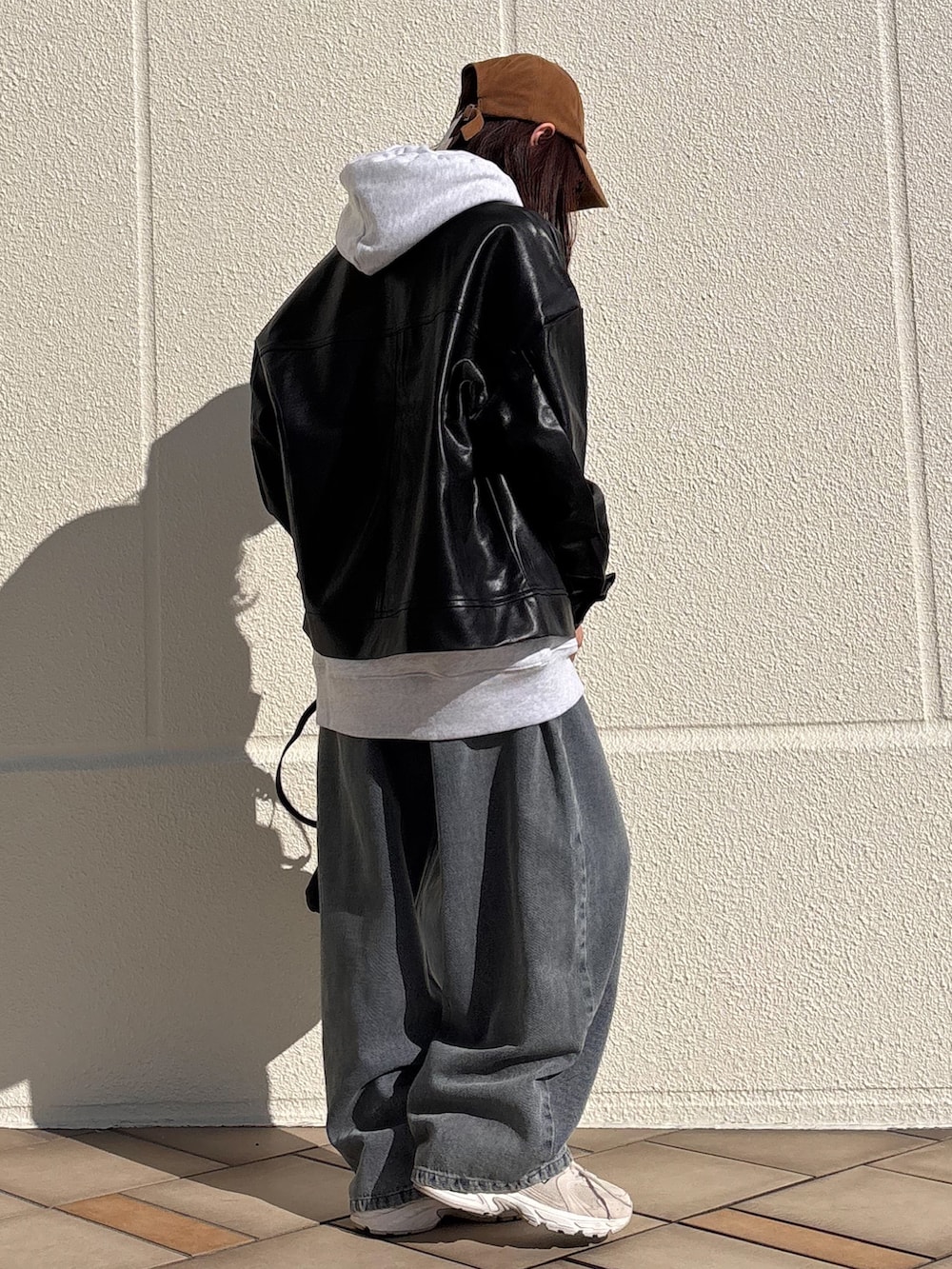 パーカーはメンズのLサイズを着用してますが