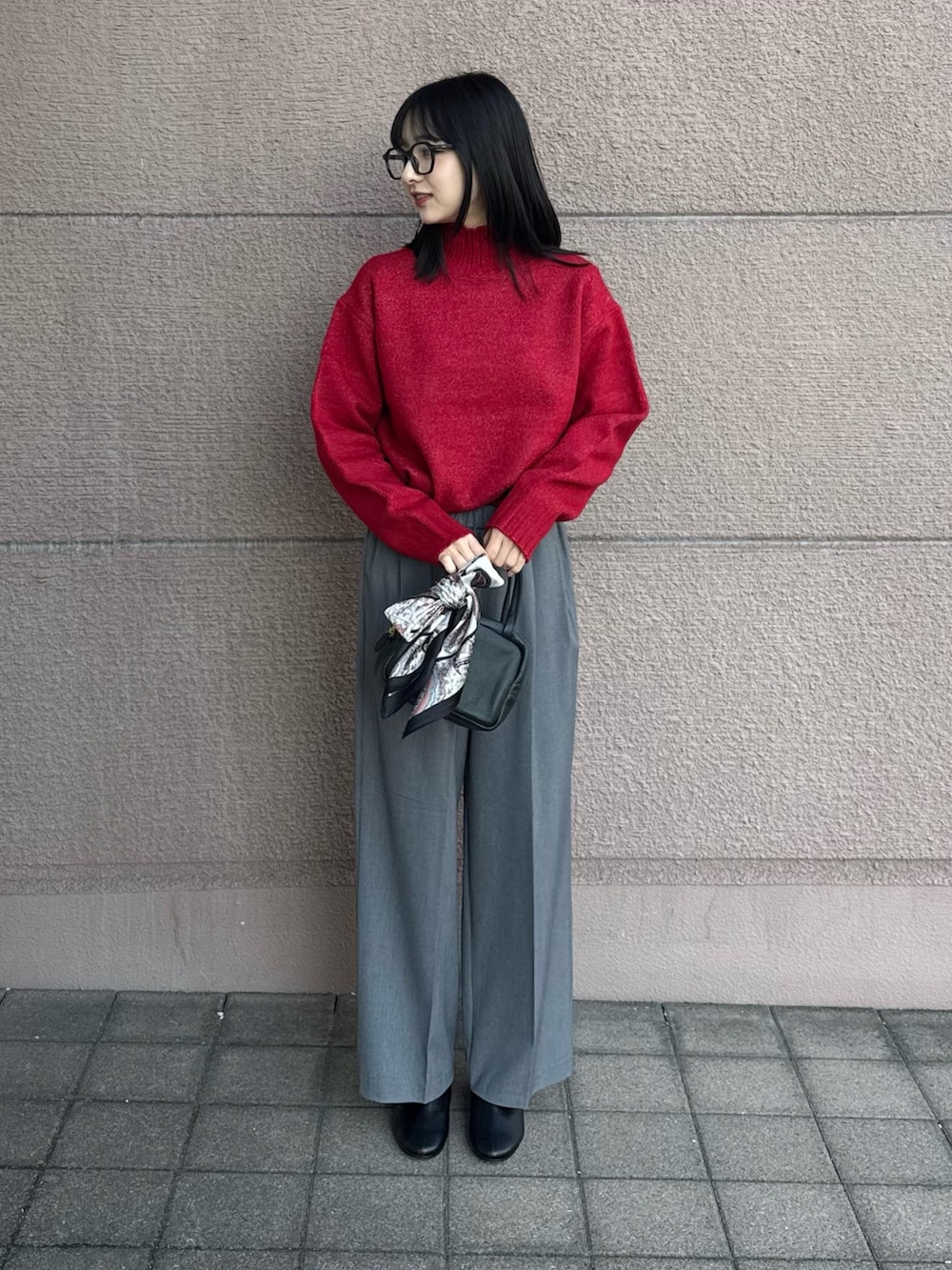 トップスはハイネックニットで色味とシルエットが可愛いアイテムになっています!長すぎないハイネックなので着ていただきやすいかなと思います!