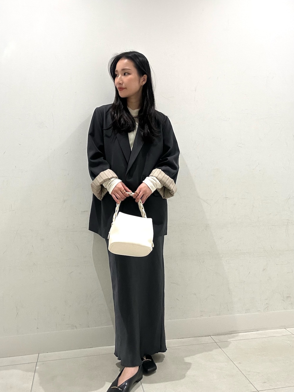 ジャケットがグレー系なのでスカートも合わせてワントーンコーディネートにしました