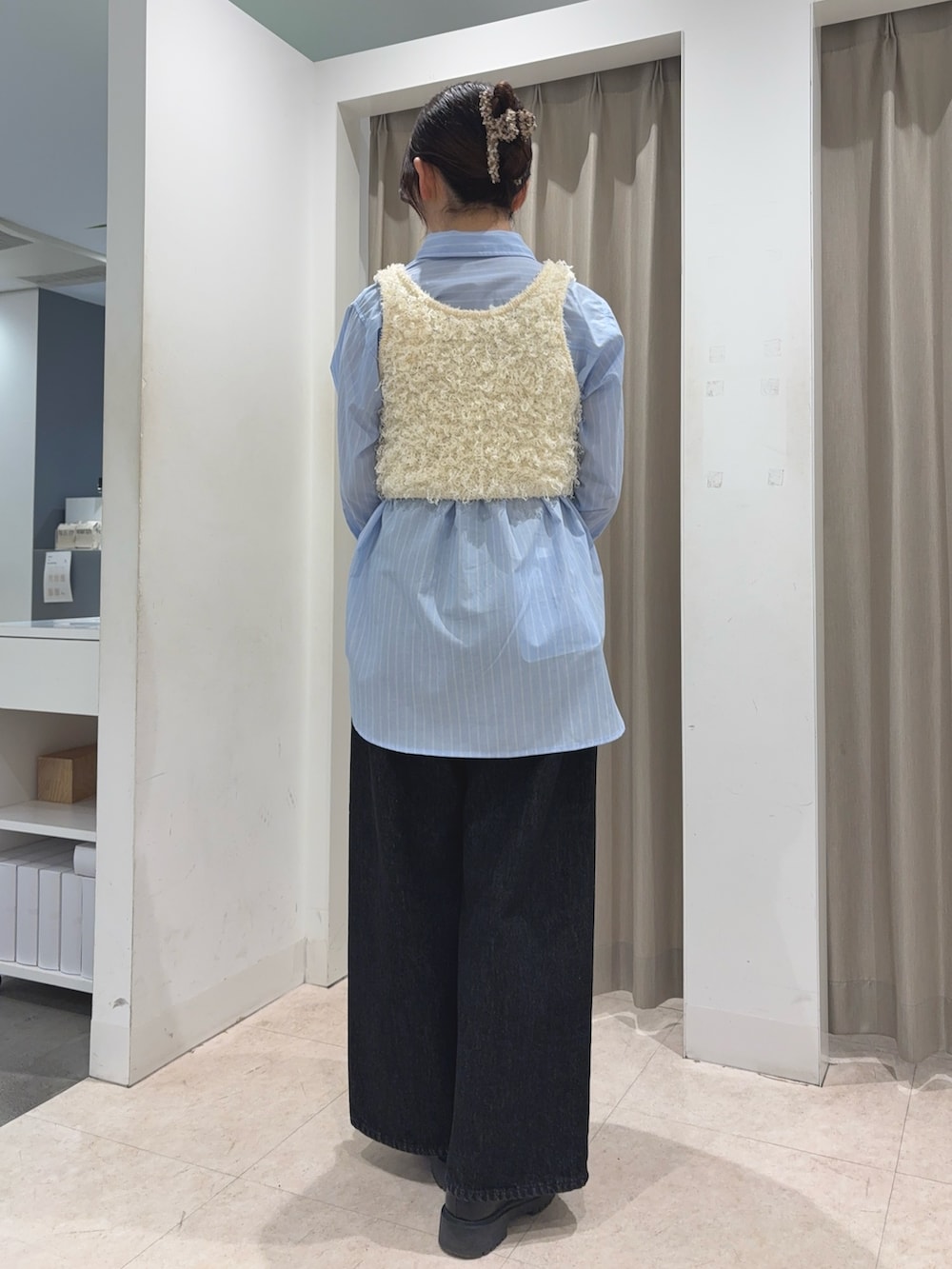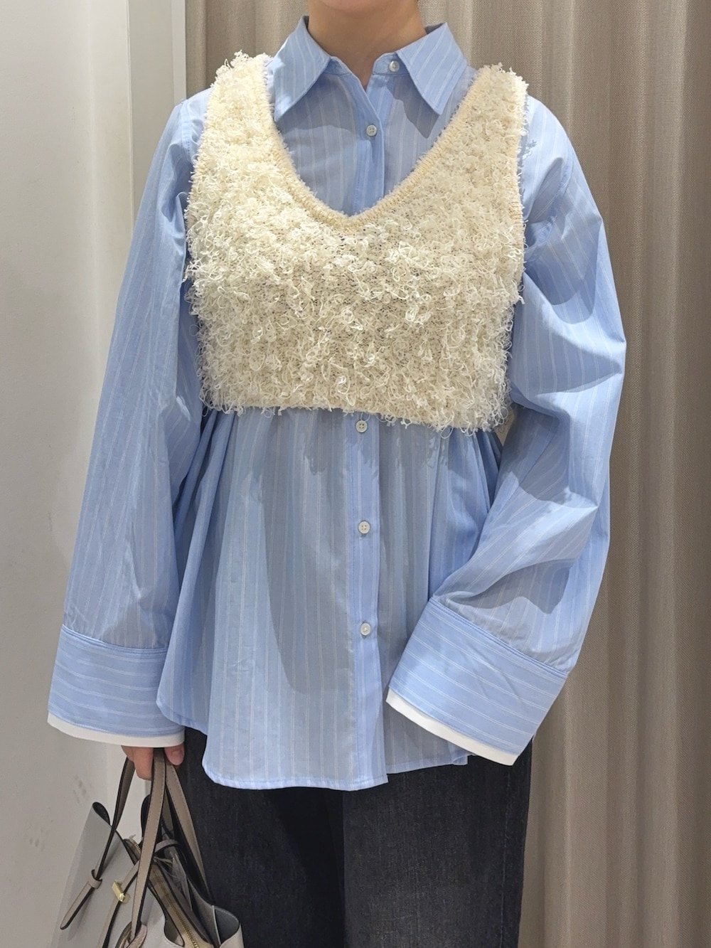 SENSE OF PLACE『洗濯可』2wayリボンヤーンループニットベスト- 着用カラー: