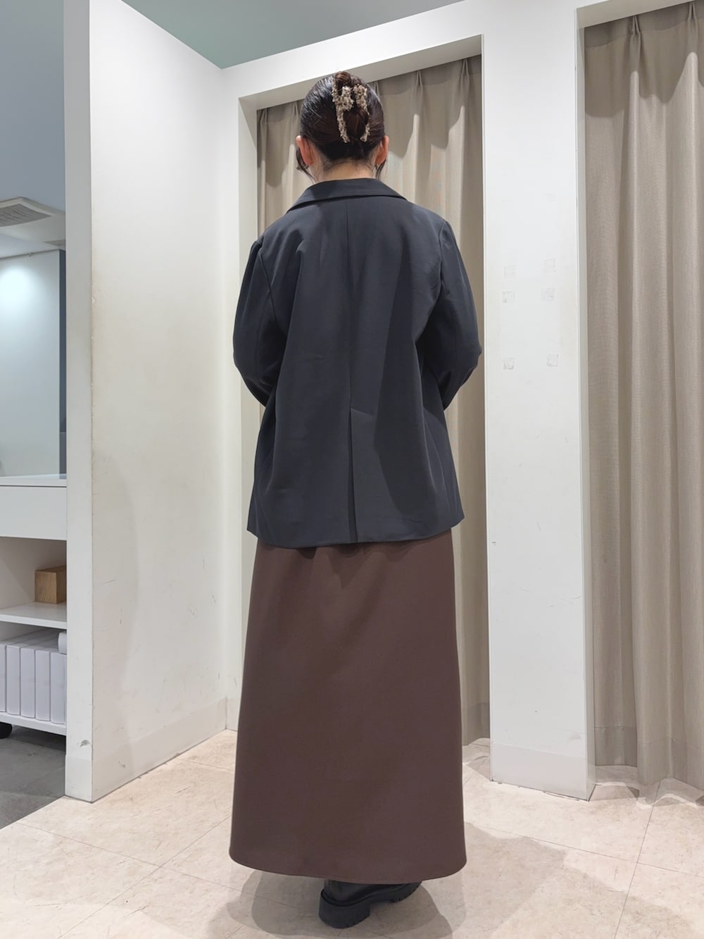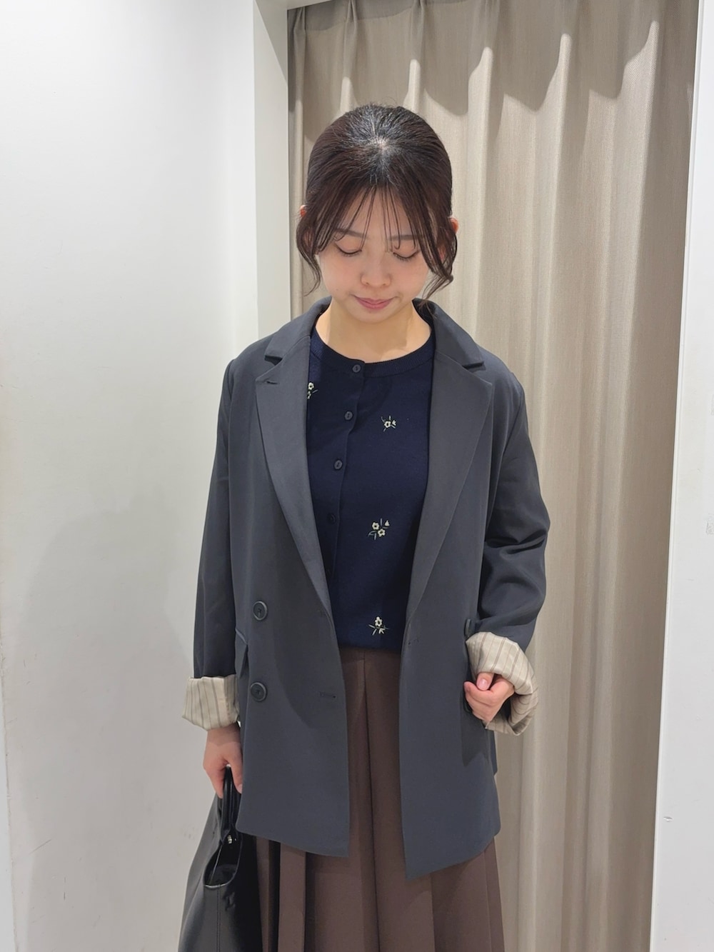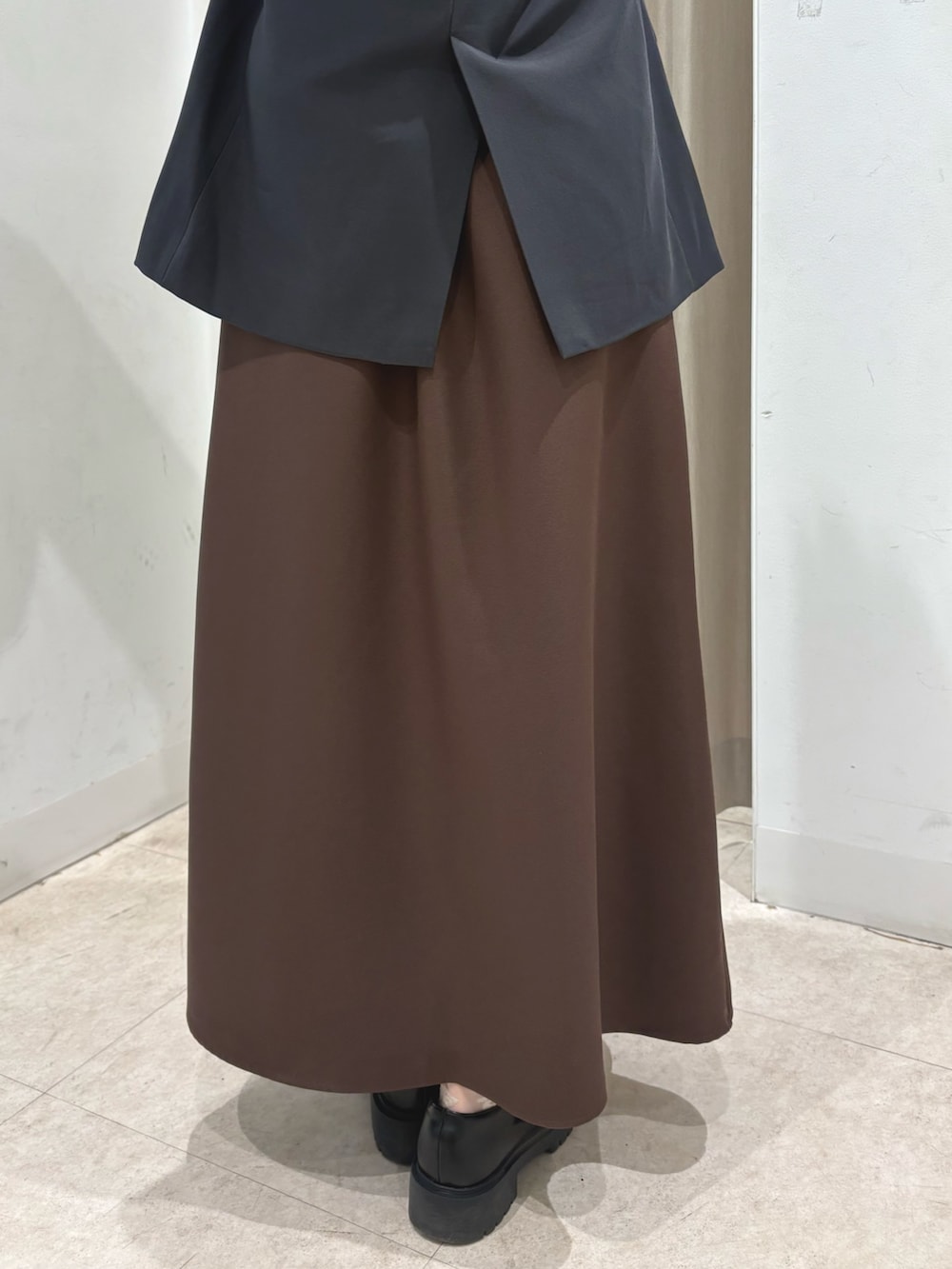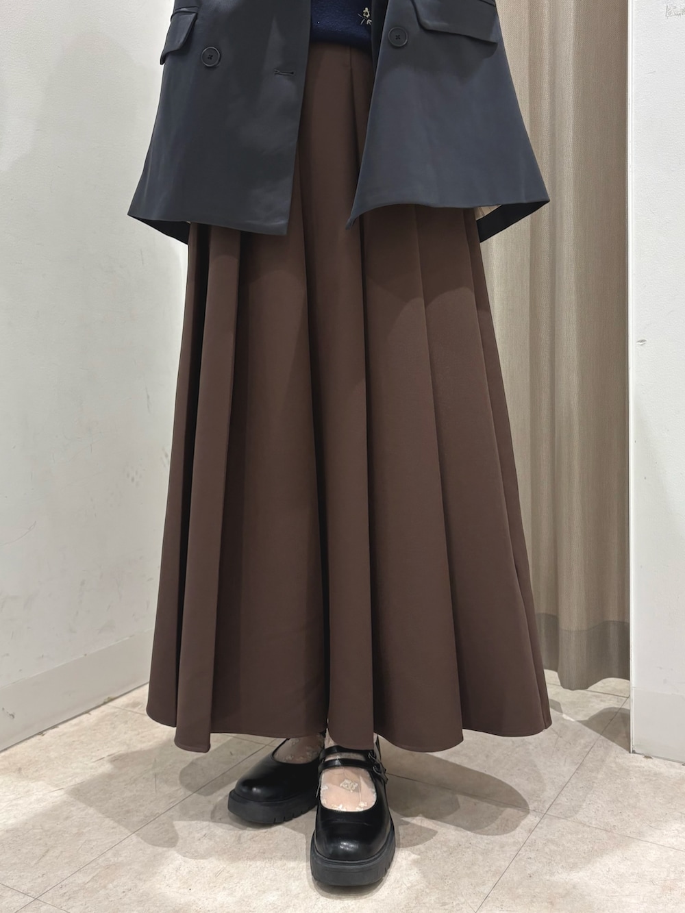 スカートは前側のみプリーツなので、まくってもプリーツが崩れにくい!広がりすぎず、上品なシルエットです🙆♀️