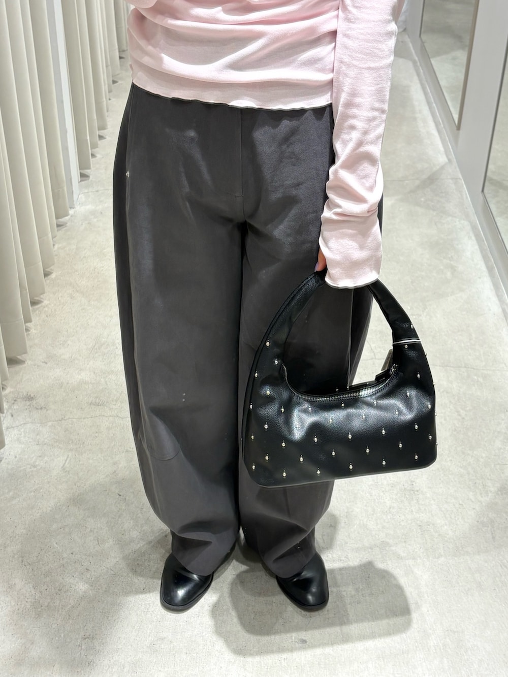 シンプルなスタイルにスタッズのバッグでアクセントを🪬