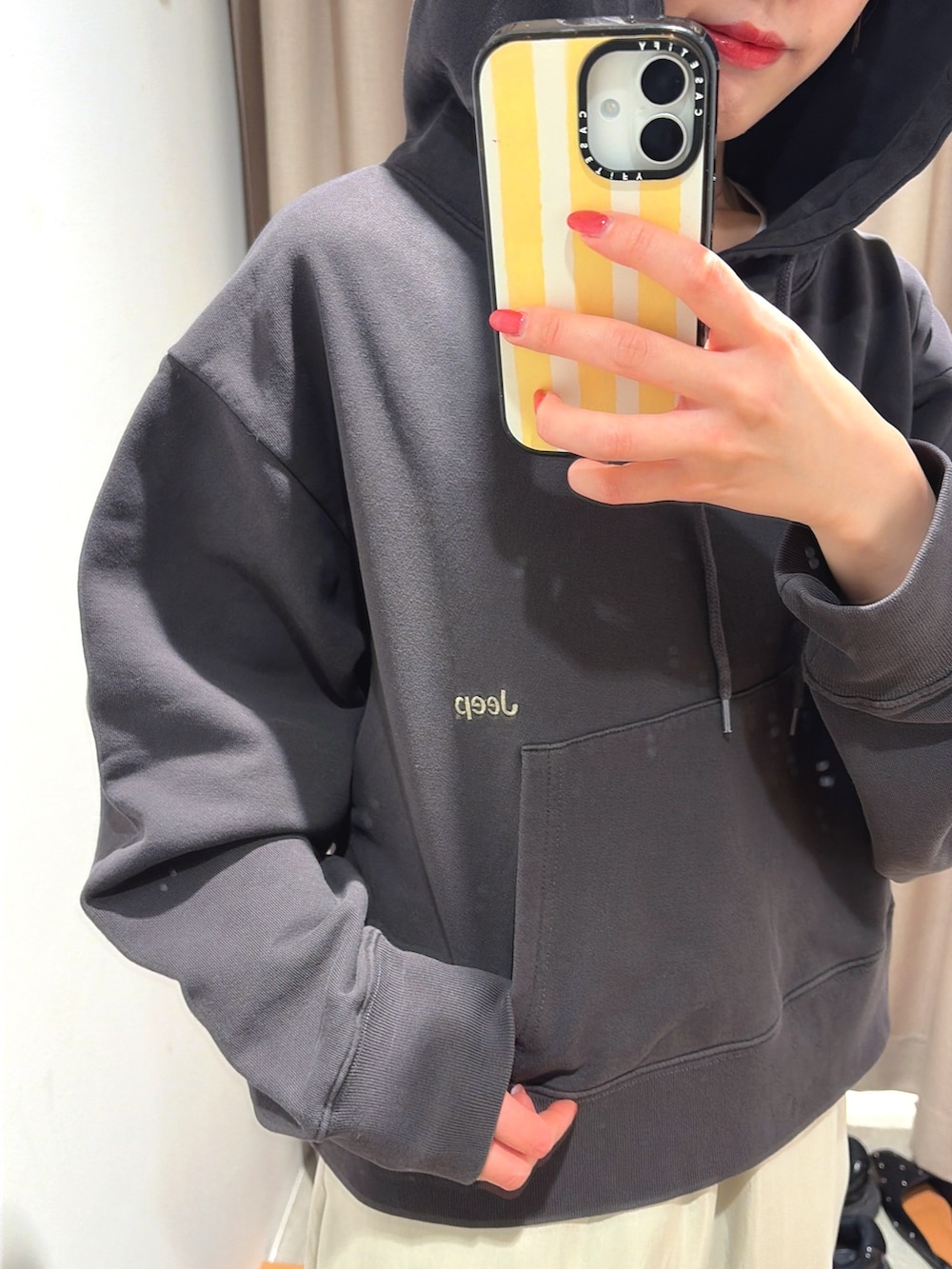 大きめのフード、ロゴ、丈感など、バランスがとても可愛いです♡