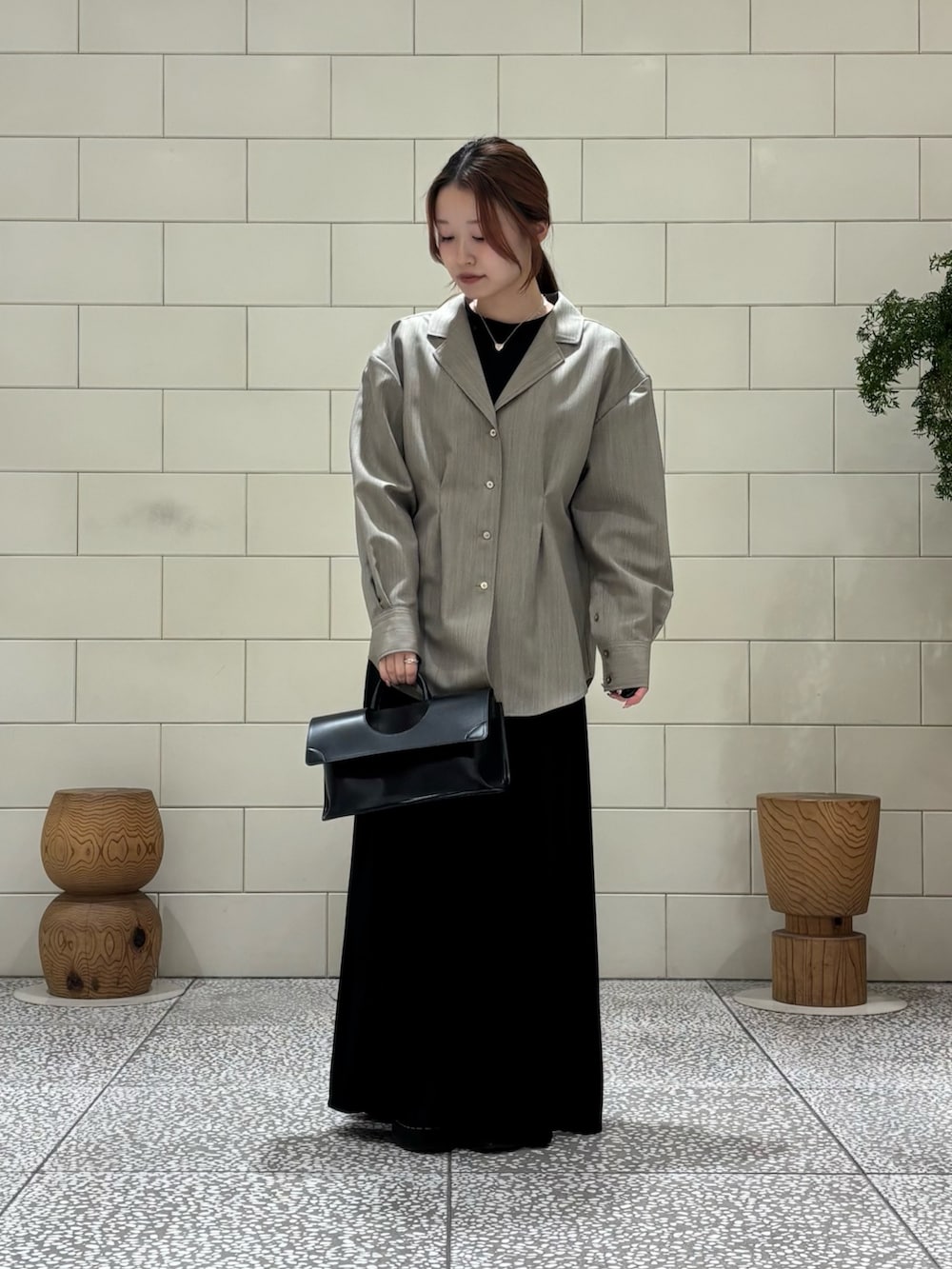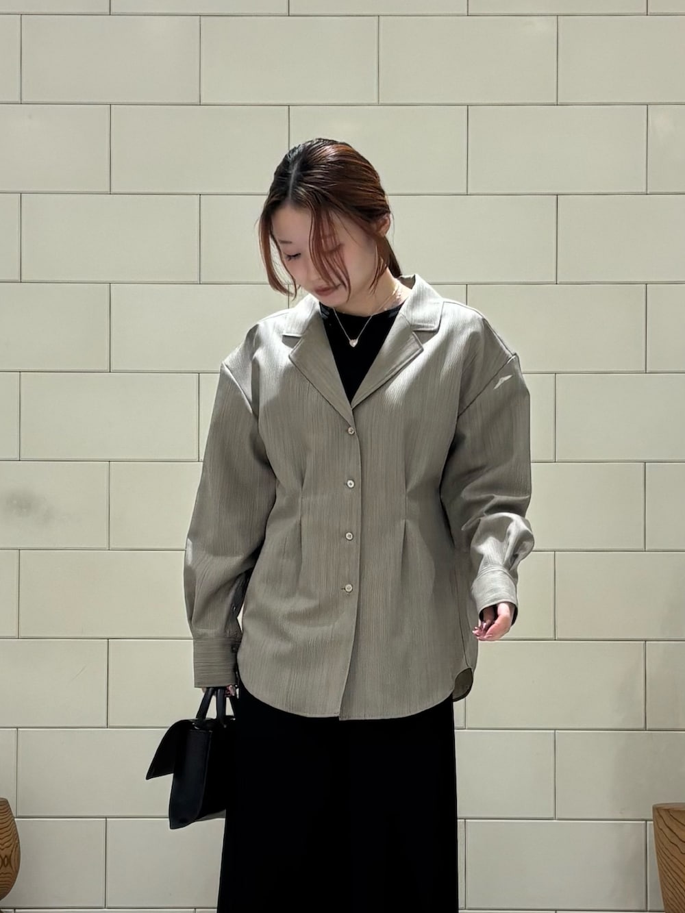 スタイリッシュなデザインのハンドバッグです。横長の形がトレンド感があり、どんなスタイリングにも取り入れやすいです。