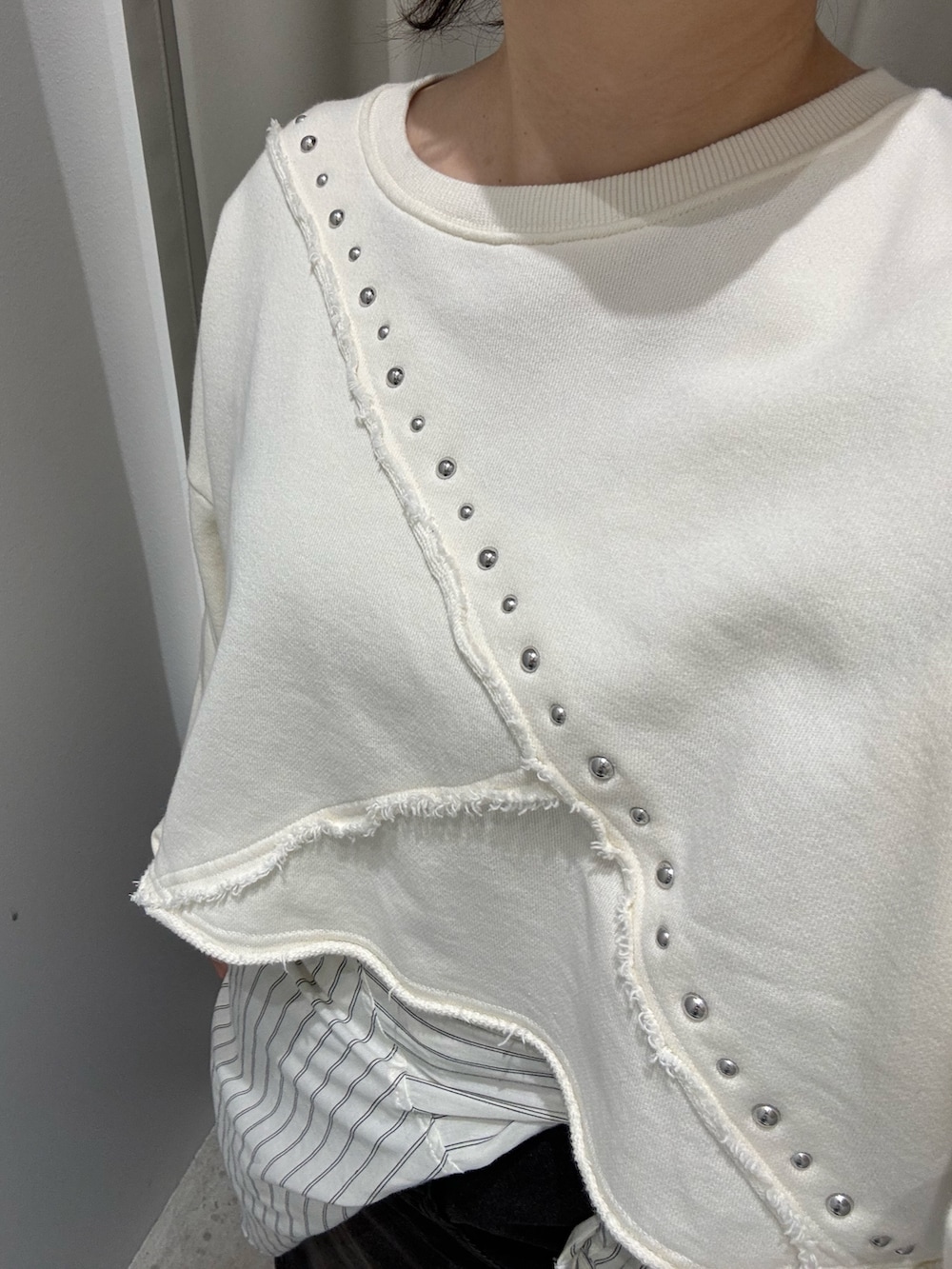 スタッズデザインのトップスがお洒落で重ね着もしやすくてオススメです!