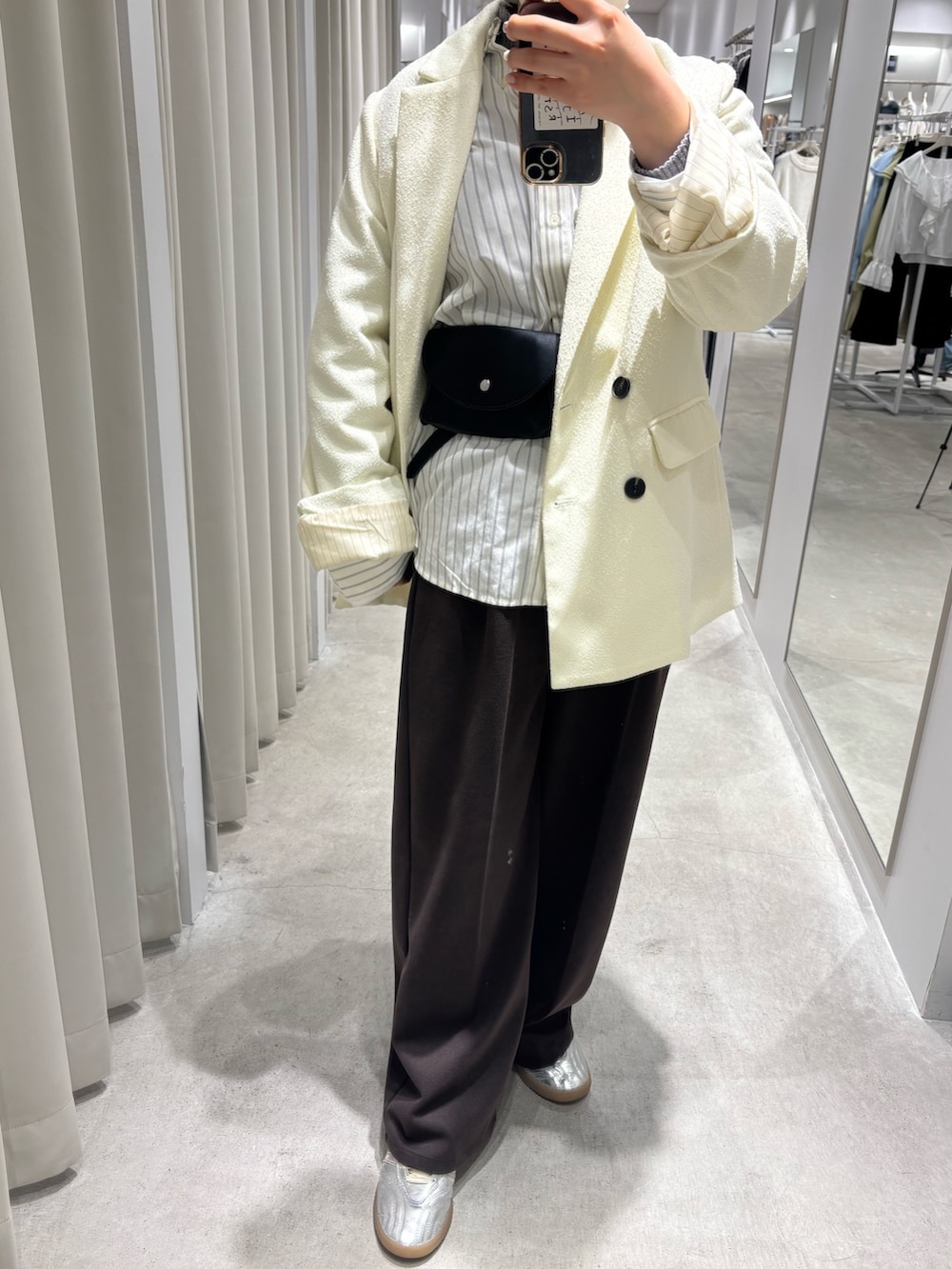 こちらのジャケットはゆとり感がある作りなので、今のまだ寒い時期でも重ね着可能で簡単に春の先取りができちゃいます◎