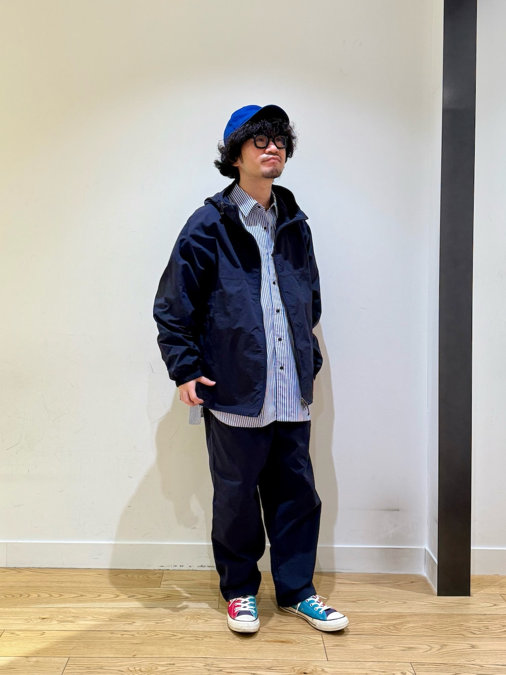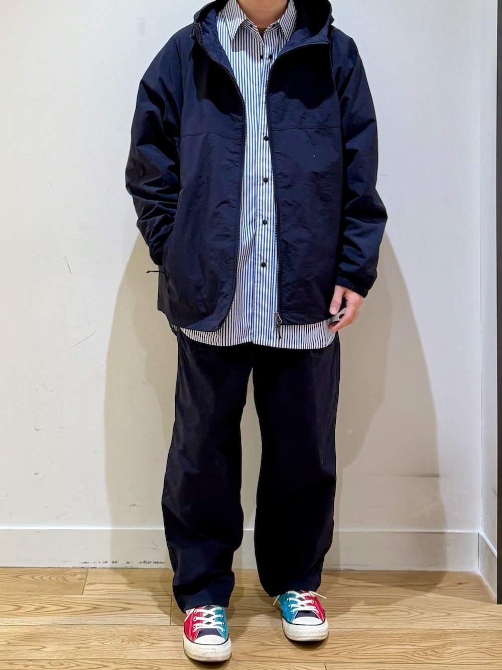 EKALのパーカーをメインにコーディネート。