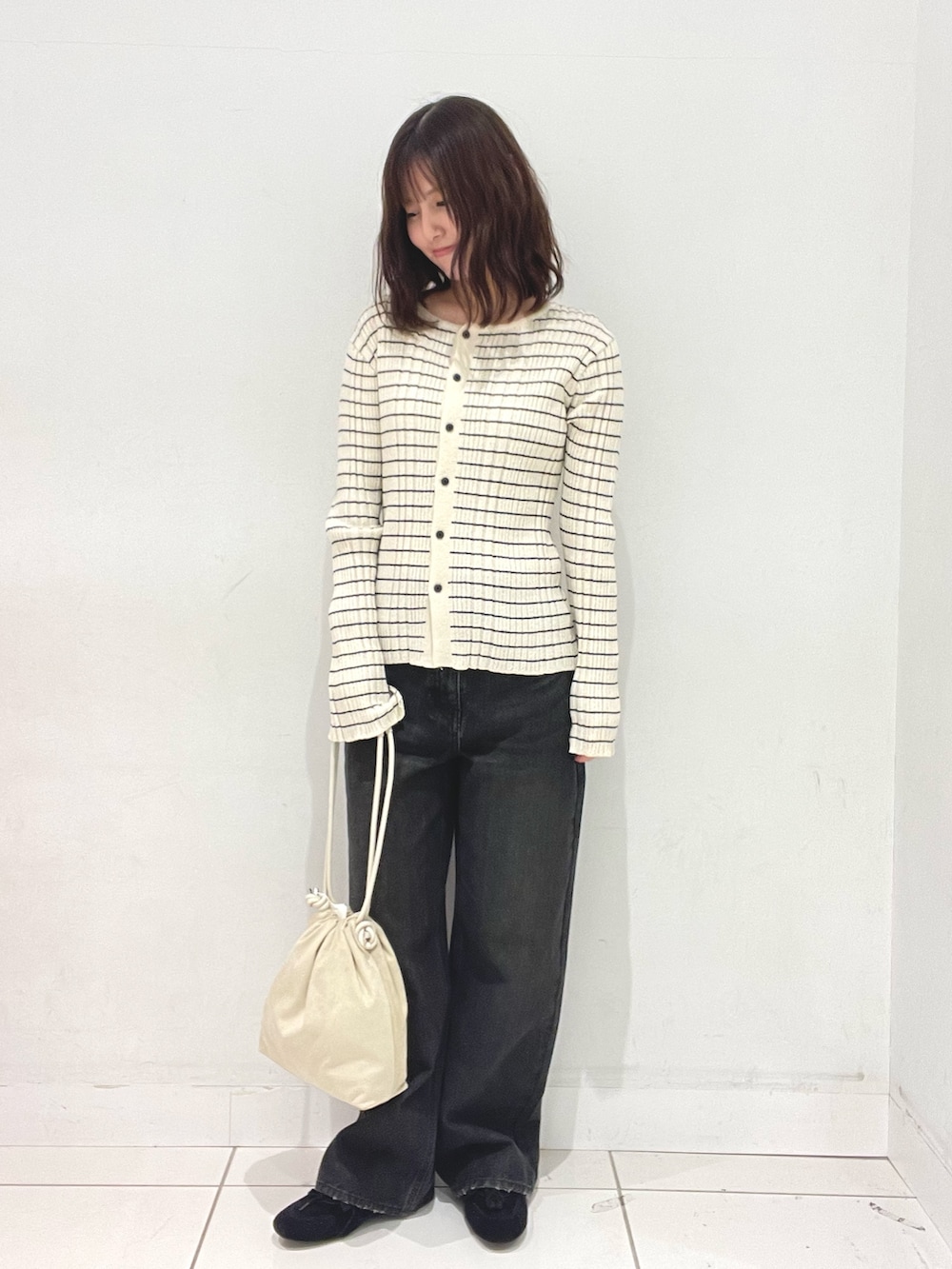 ボーダーのカーディガンはタンクトップ付きなのでビスチェ風にも着れて着回し抜群です◎
