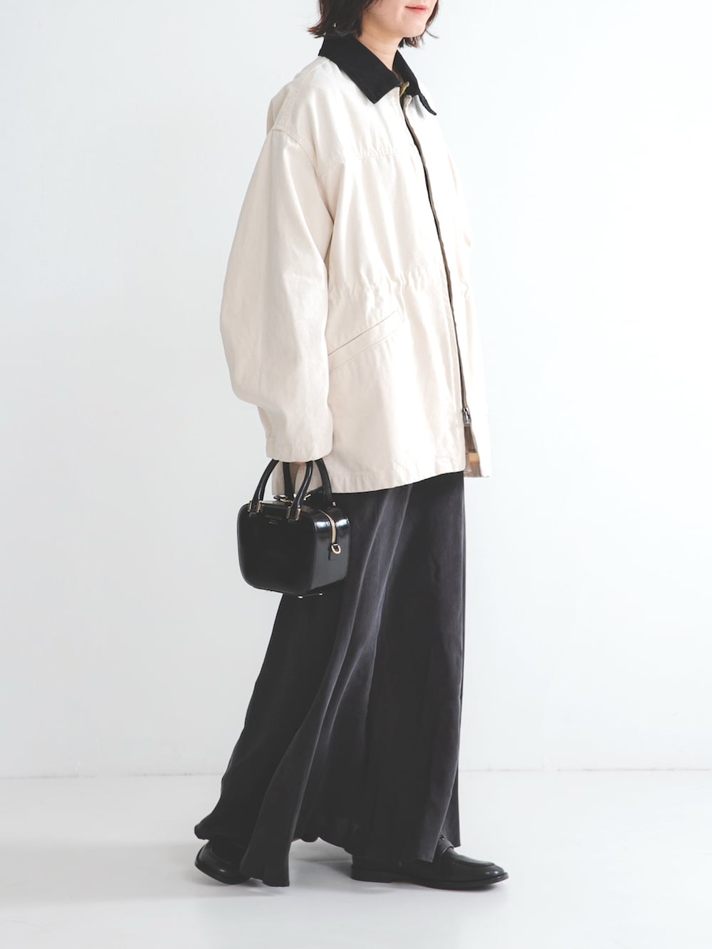 配色の衿がワークテイストに洗練されたアクセントを加え、大人のカジュアルスタイルをクラスアップさせてくれる一着です◎