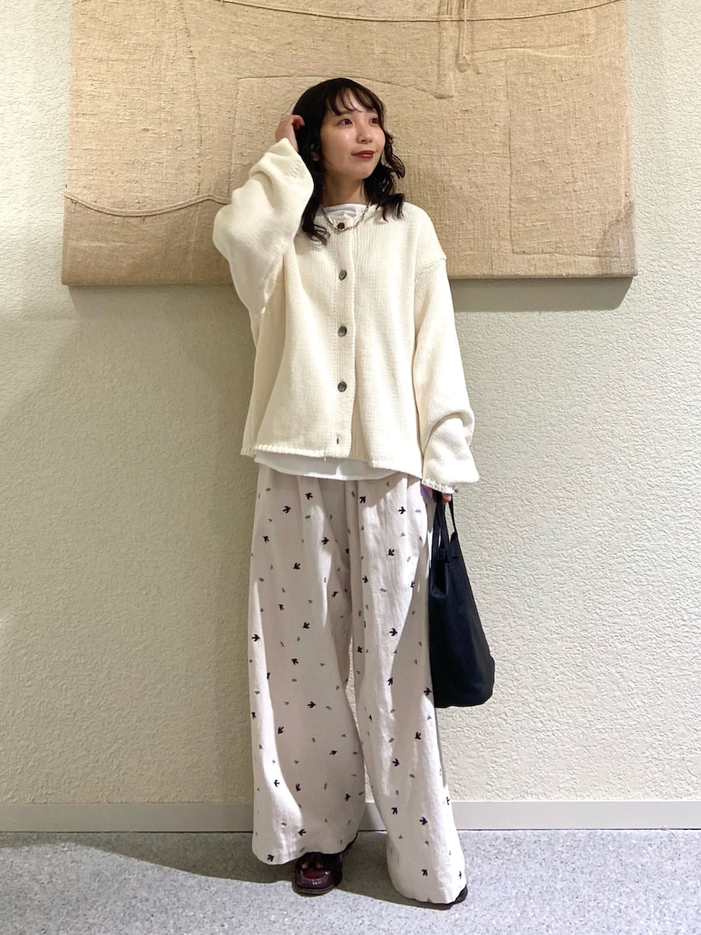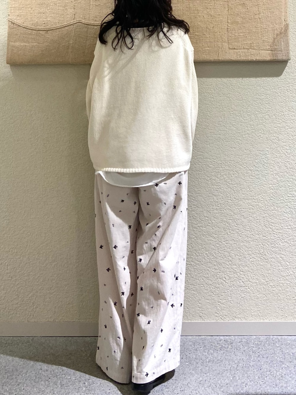 145cm|ツバメ刺繍イージーパンツ