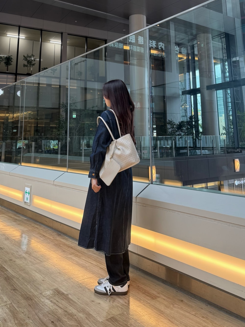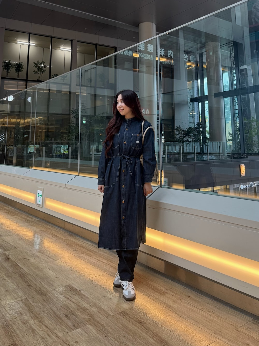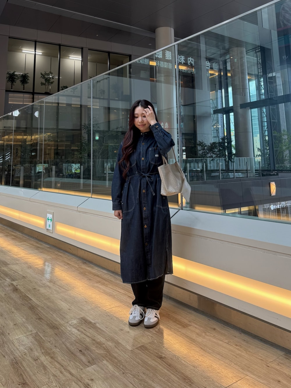 まだ寒さの残る今の時期には、中にタートルネックやカットソーをレイヤードするのも🙆🏻♀️