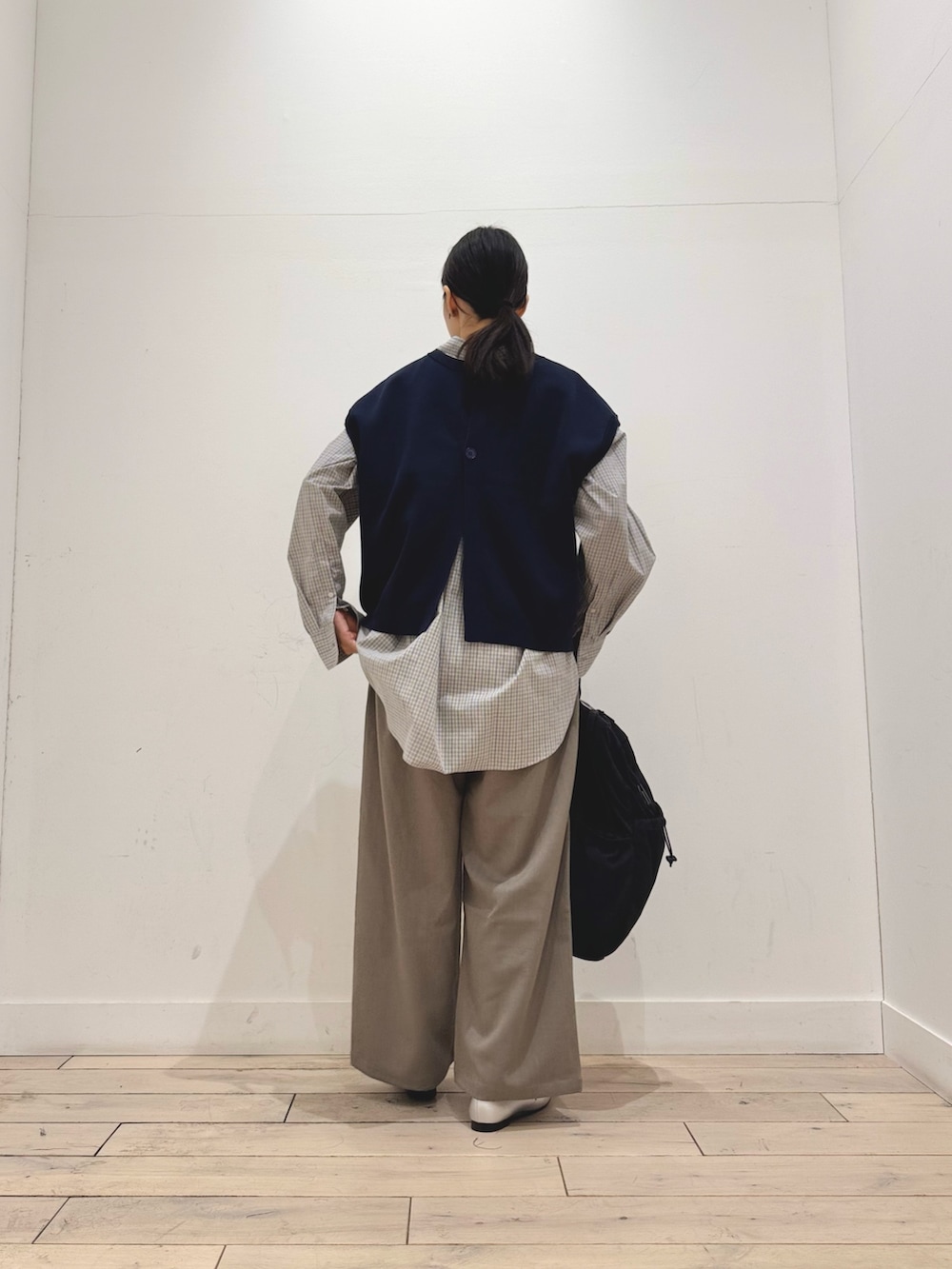 ベストは前後2WAYなので、印象変えて着ていただけます◎丈短めなのでレイヤードしやすいです。