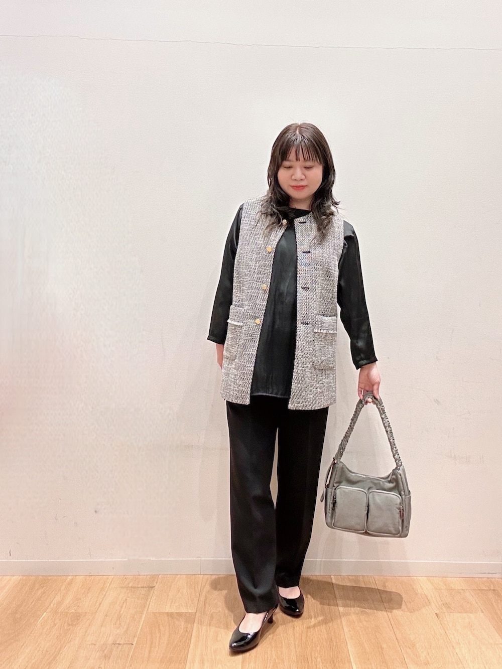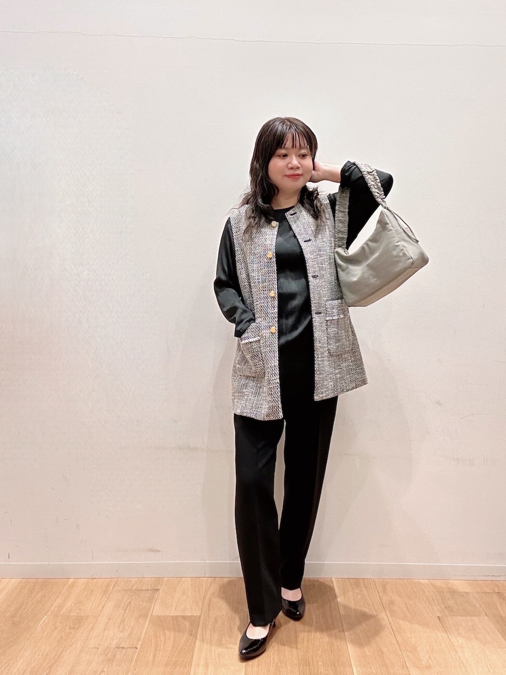 ノーカラーツイードジレ