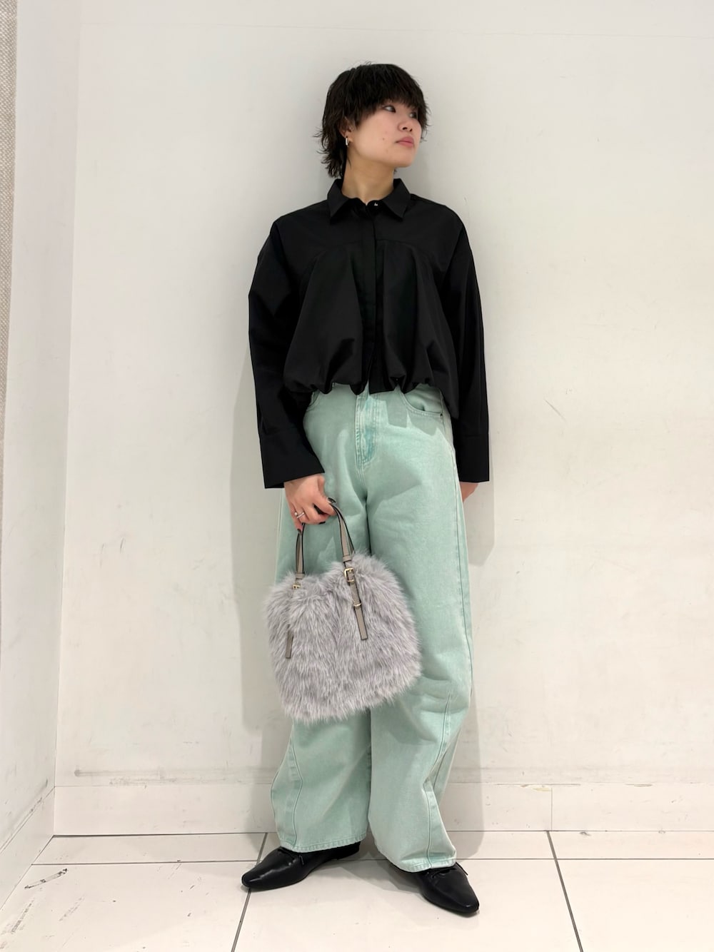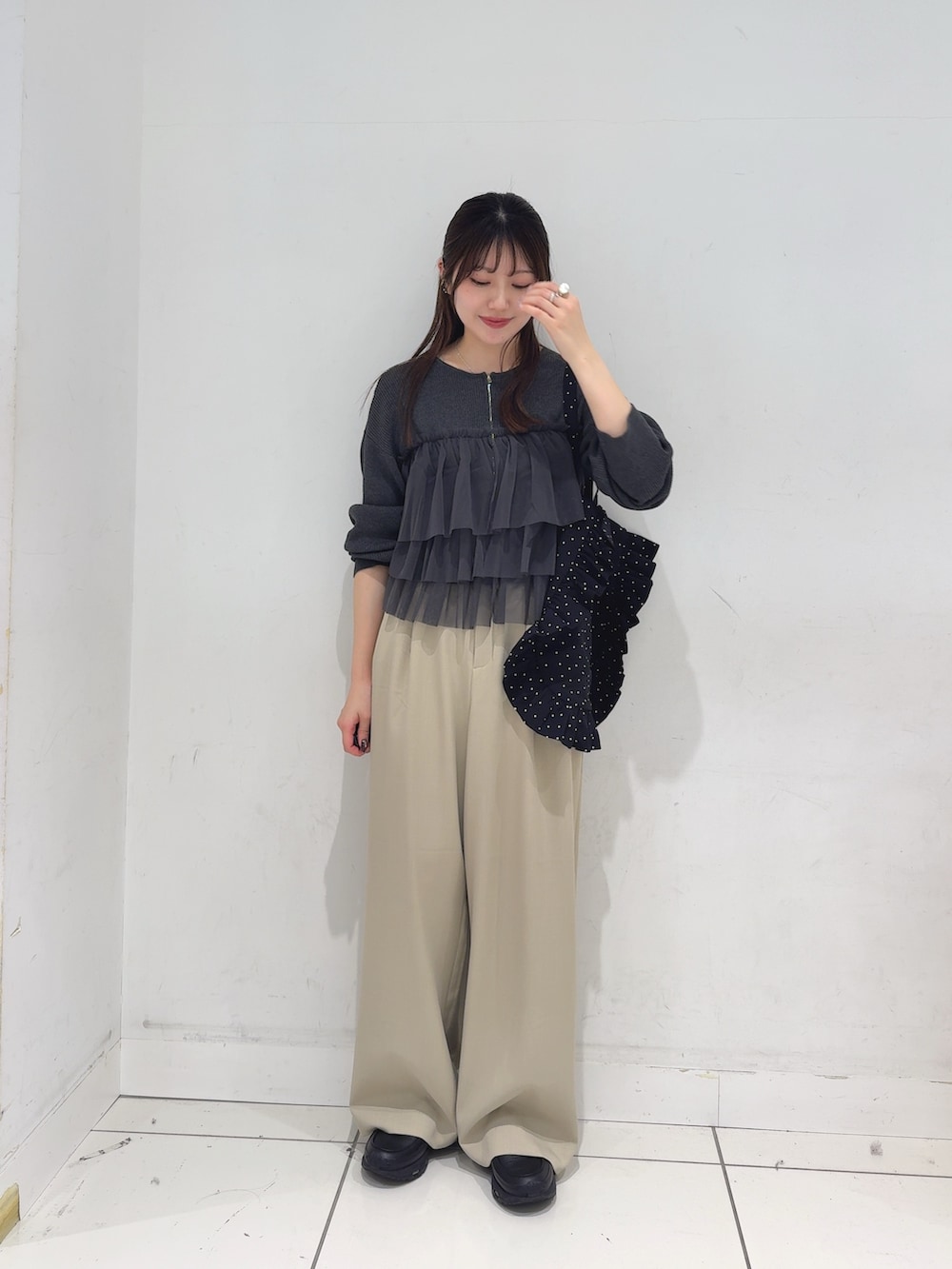 ひとくせあるアイテムもシンプルなパンツだと合わせやすいです🌟