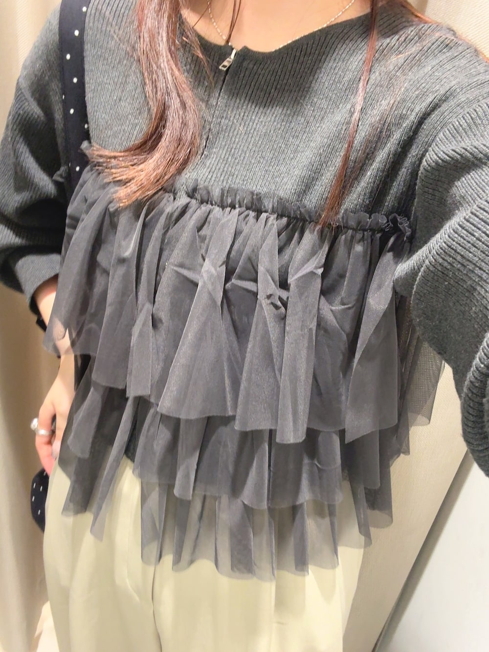 『洗濯可』ダブルジップフリルニットカーディガン
