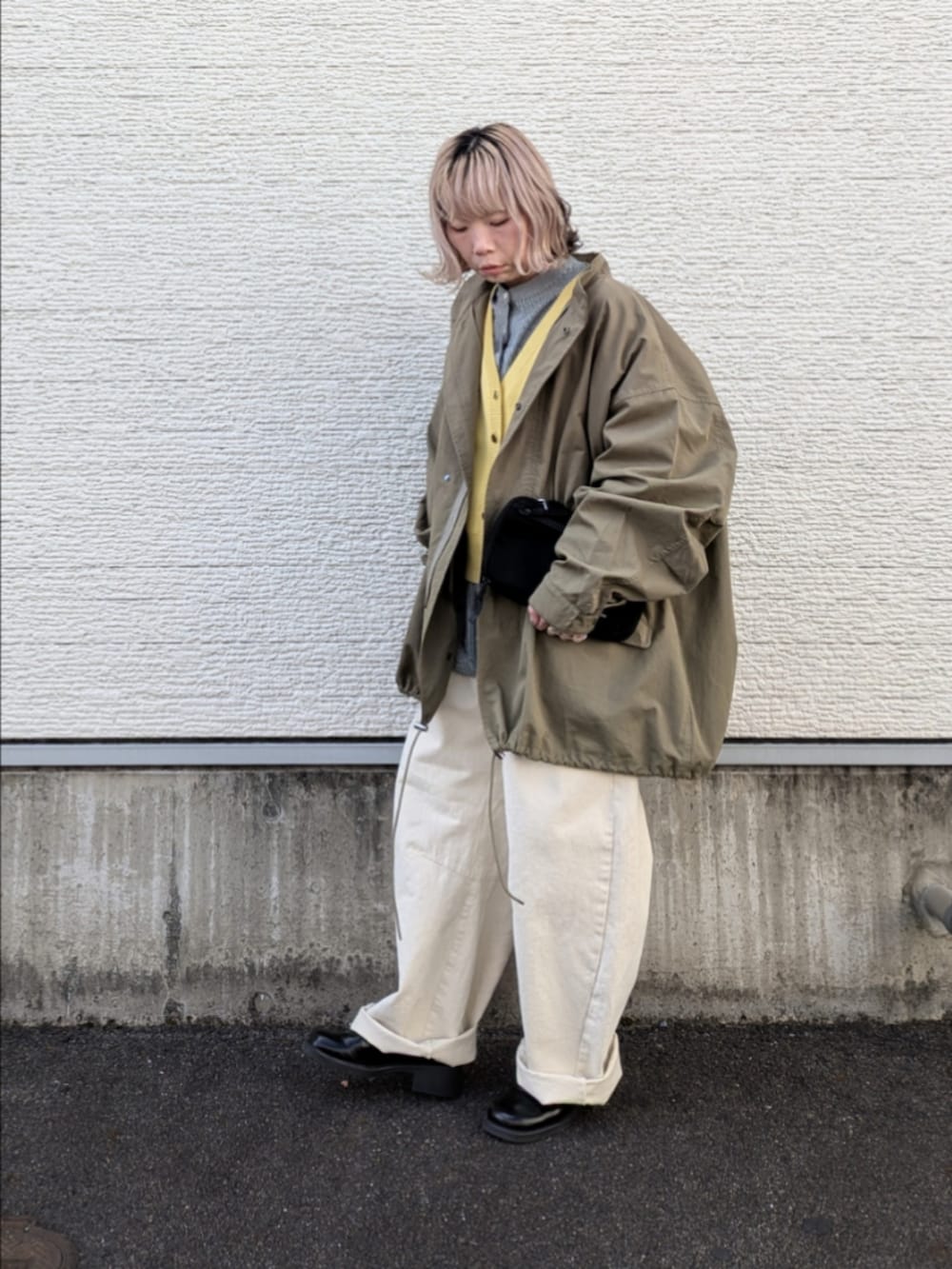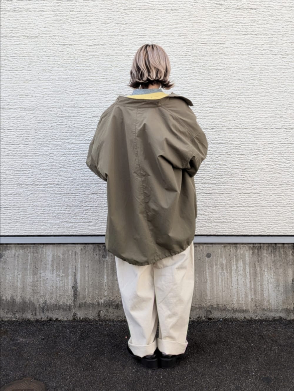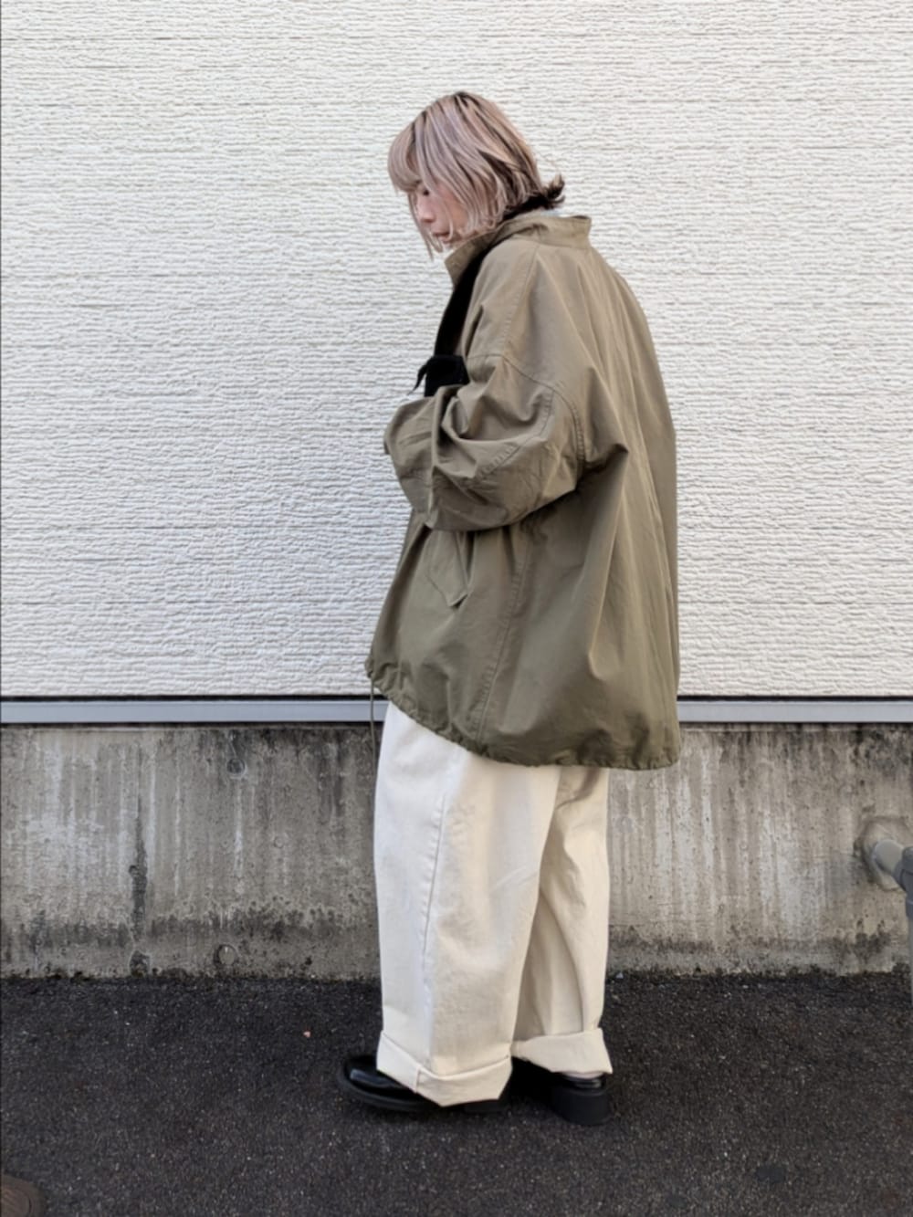 オーバーサイズで羽織りやすくシルエットがかわいい春物アウターです。