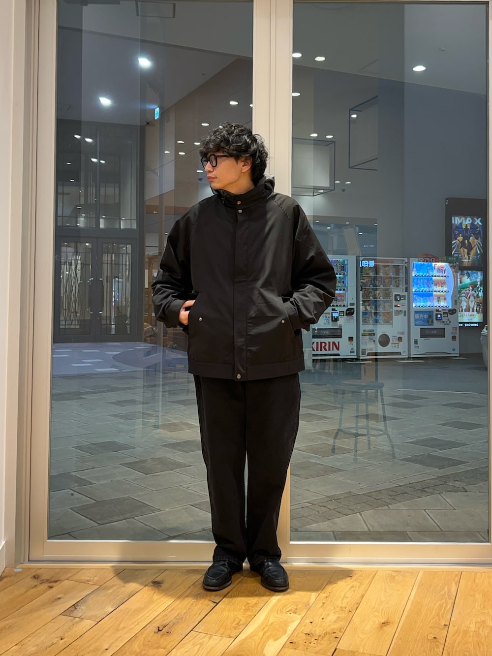 ジャケットにナイロンフーディーをレイヤードさせて少し癖のあるスタイリングに!