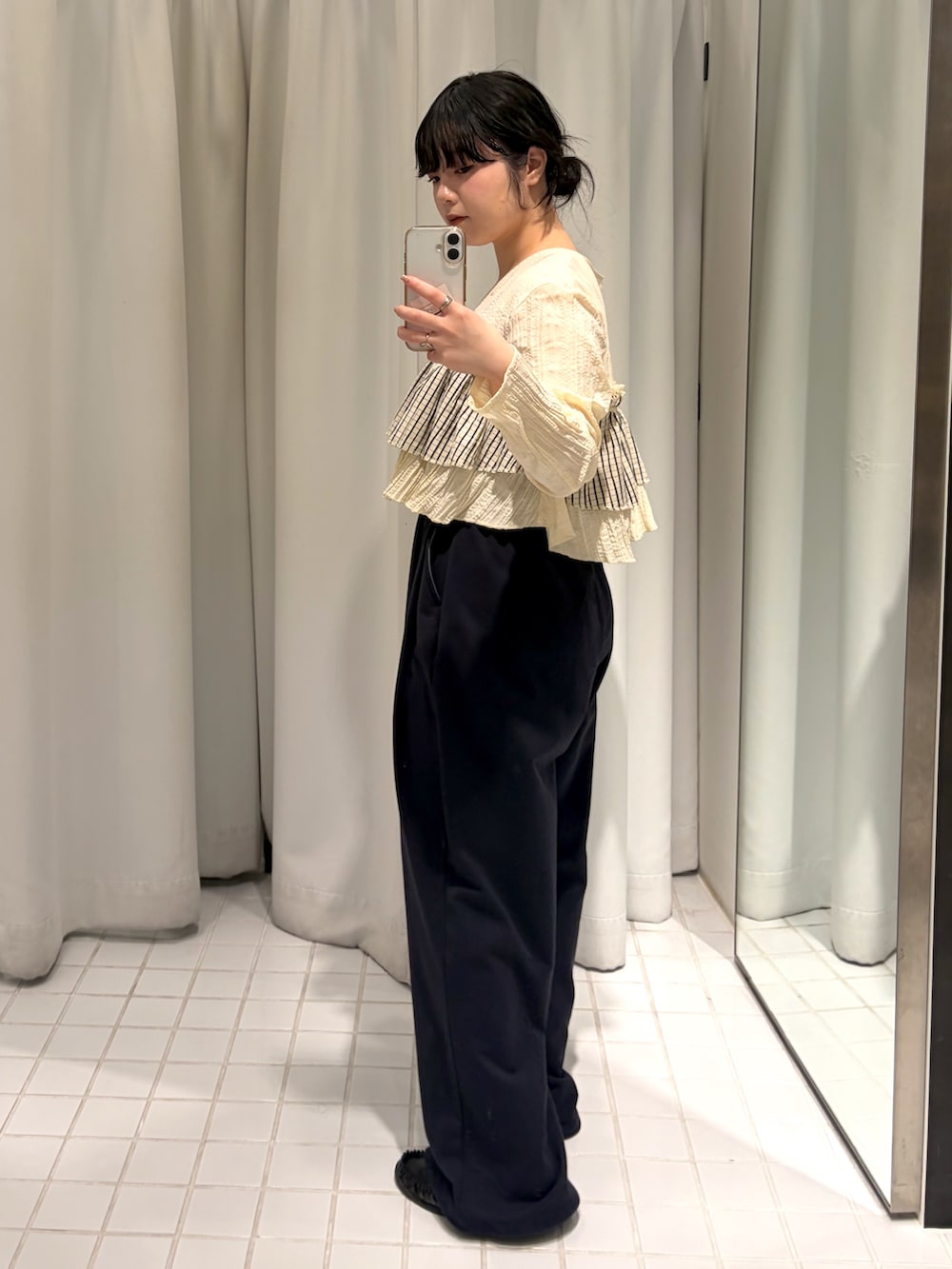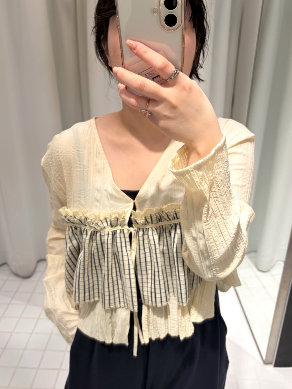 ブラウスは、フリルが女性らしく可愛いポイントです✨今の季節から春先まで活躍してくれるアイテムになっています!