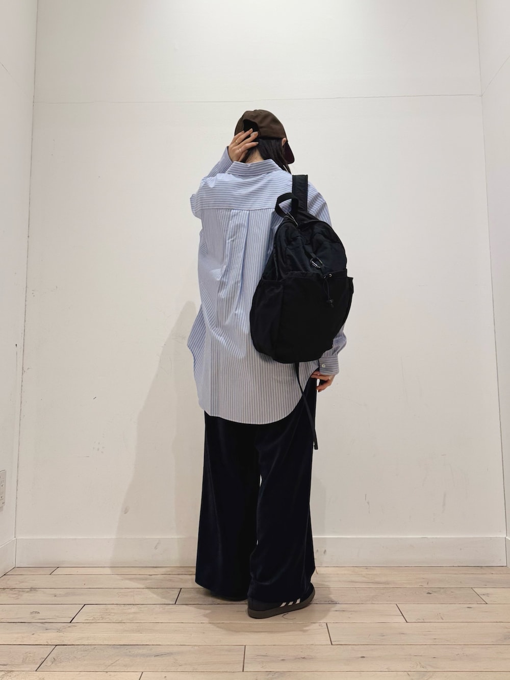 シャツはコットン素材なので通年着用できます!ストライプシャツは1枚あると着回しもできて便利です◎