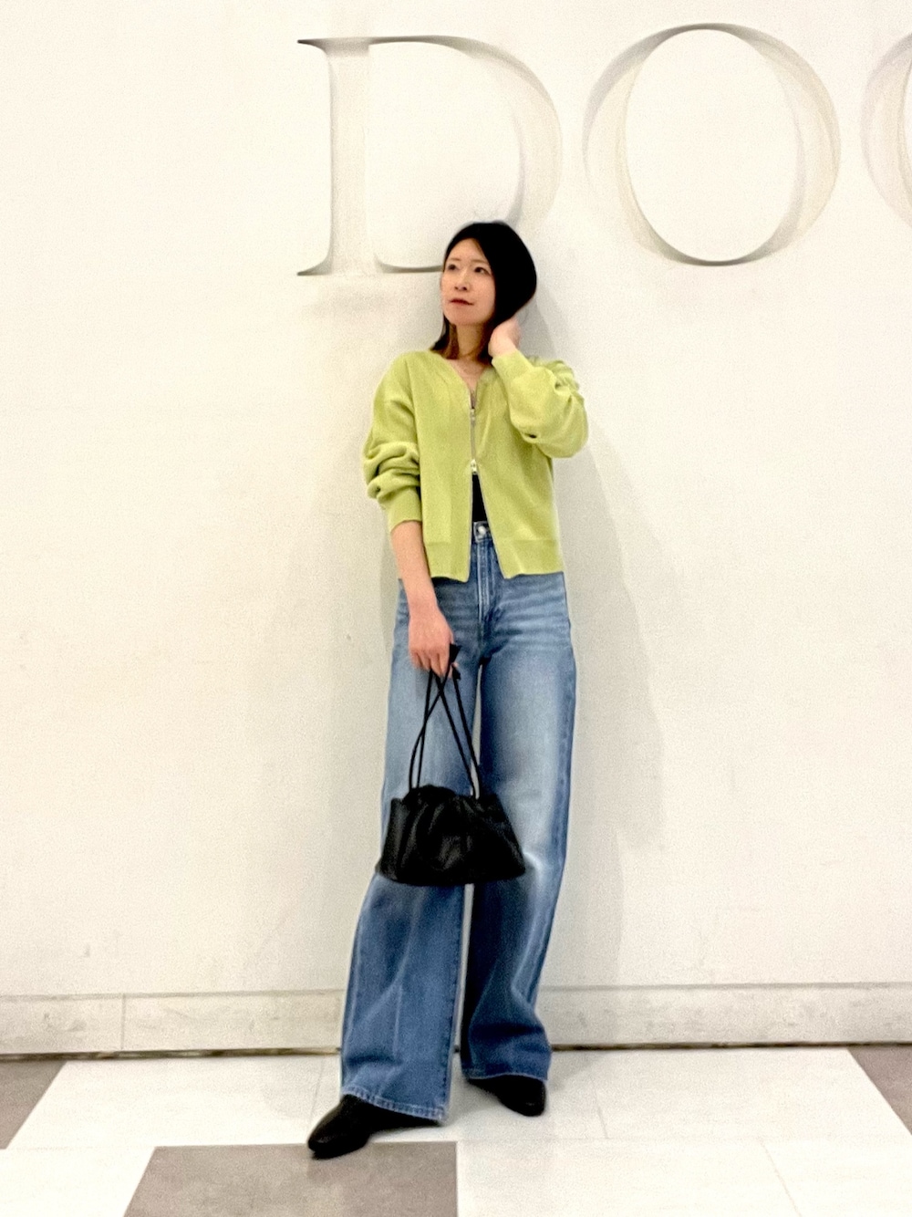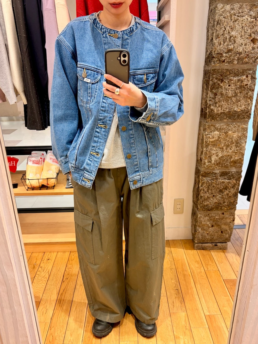 leeのノーカラーデニムジャケットに