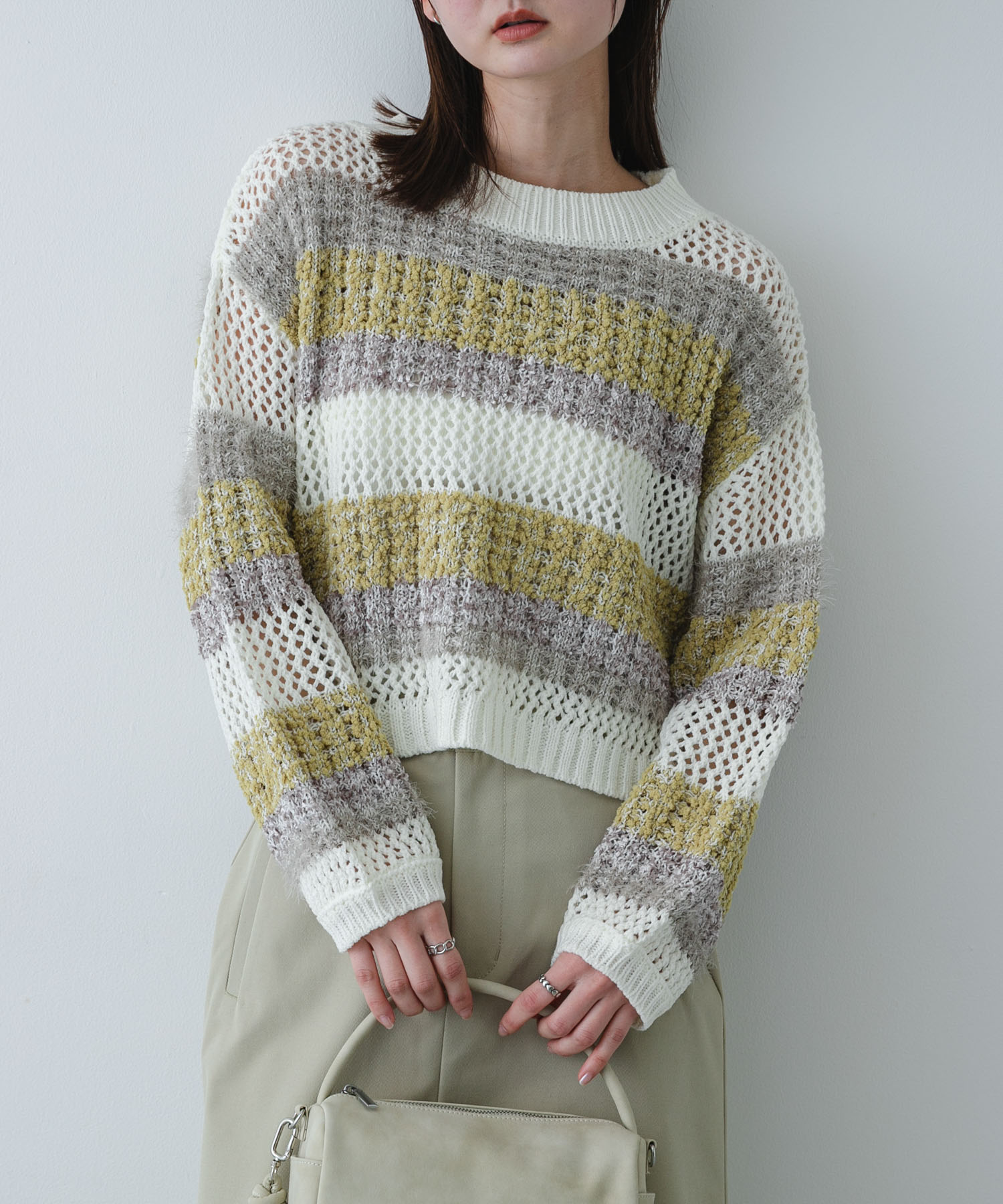 SENSE OF PLACE『洗濯可』ミックスヤーンワイドボーダーニット- 着用カラー: