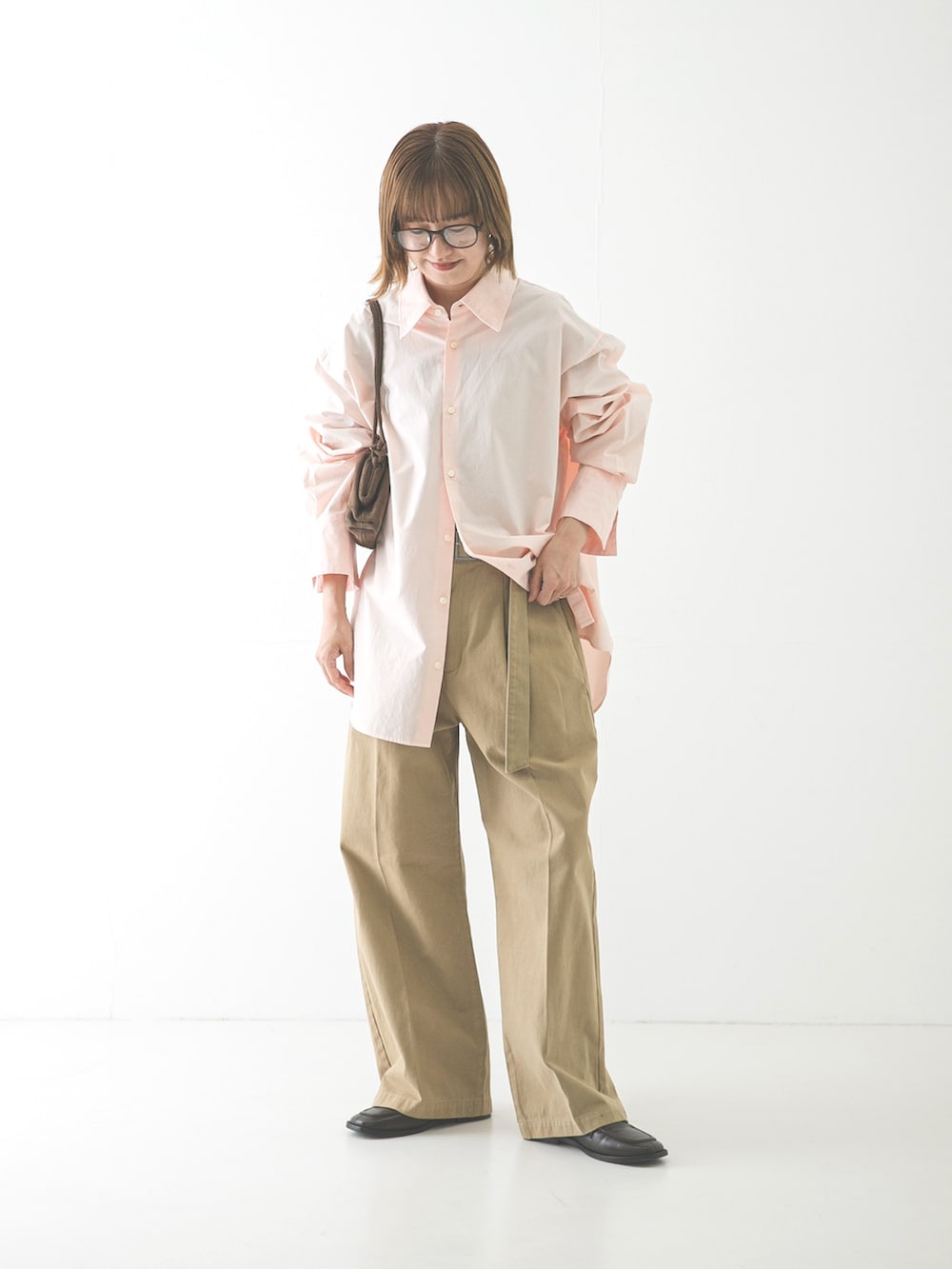 『3サイズ展開』ベルト付きタックワイドチノパンツ