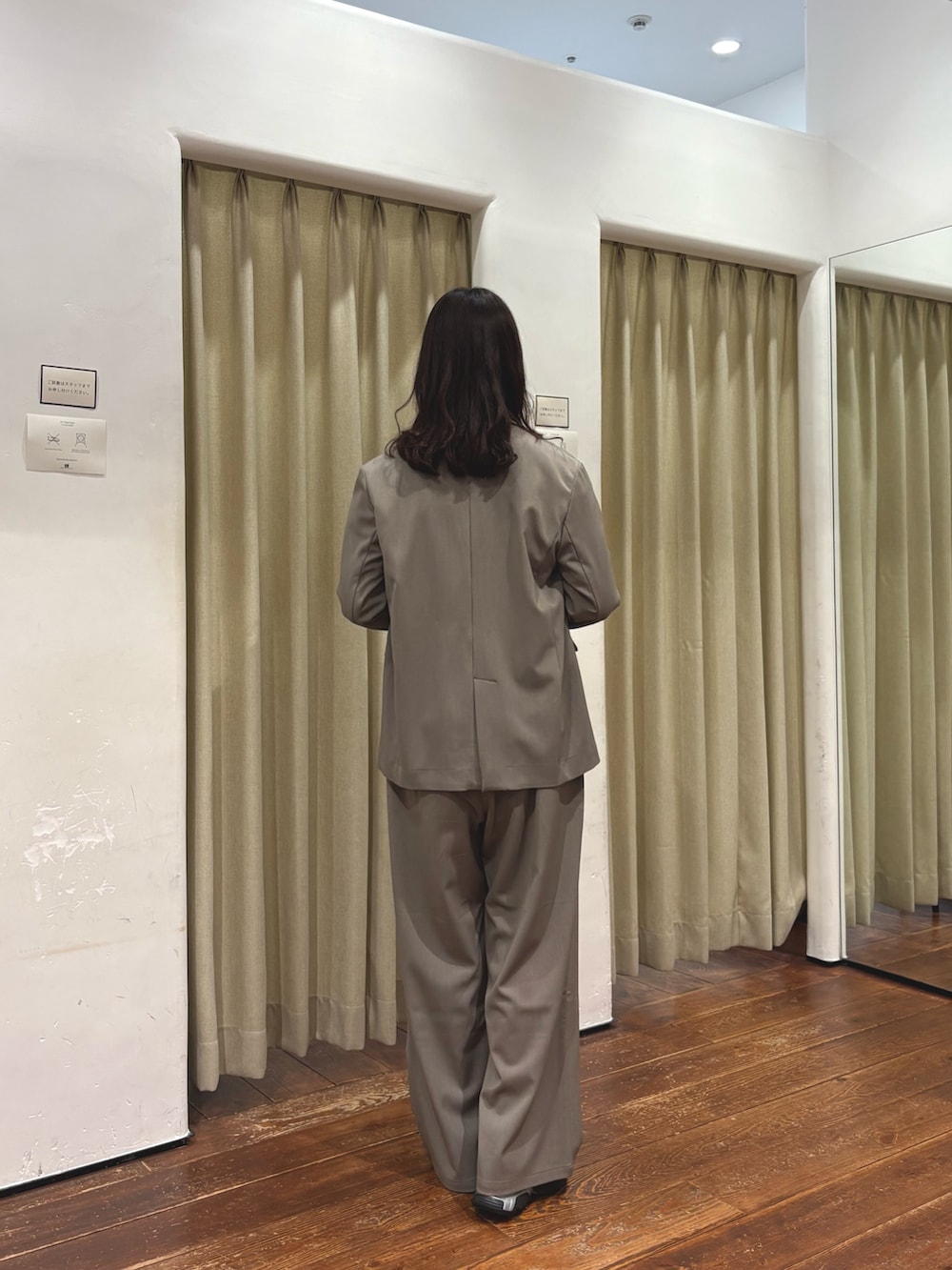完声シリーズのテーラードジャケットにフロントタックイージーパンツを合わせセットアップで着用しております!