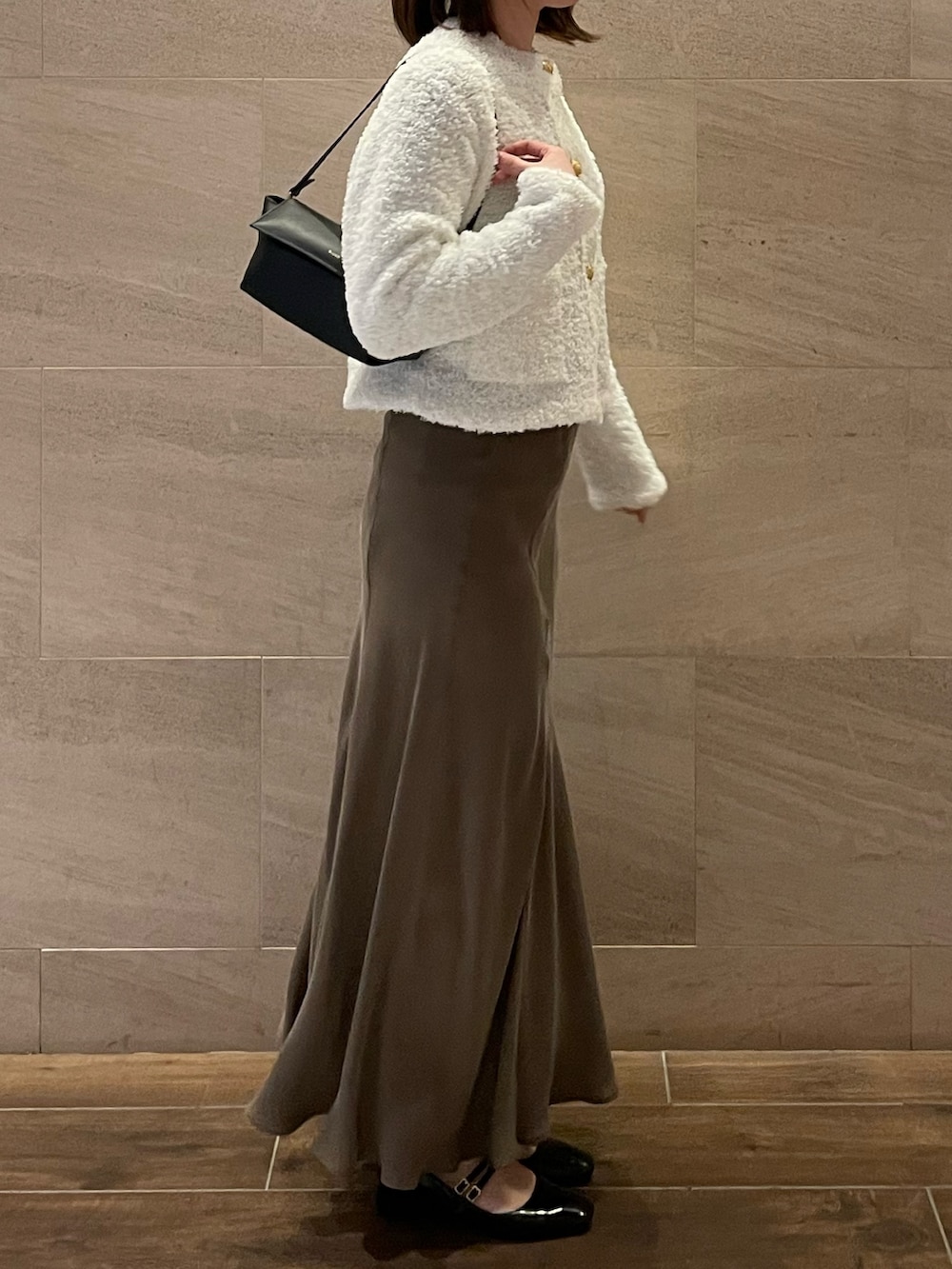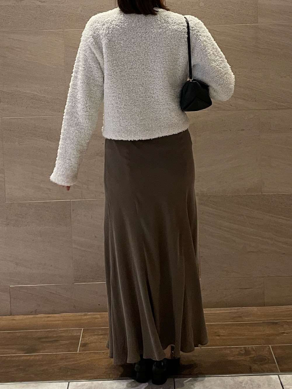 短めなデザインなので、ロングスカートに合わせてみました◎