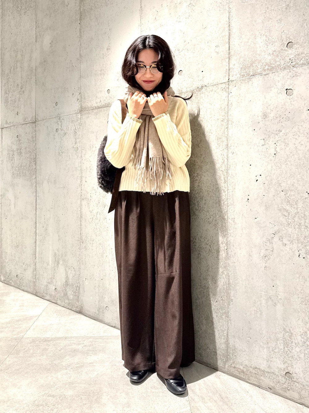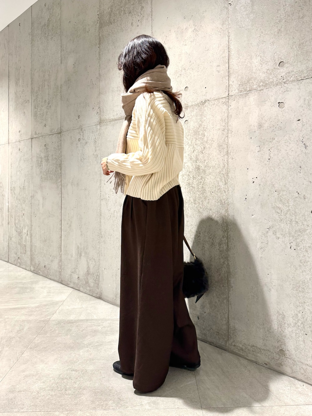 オフとブラウン系でまとめた