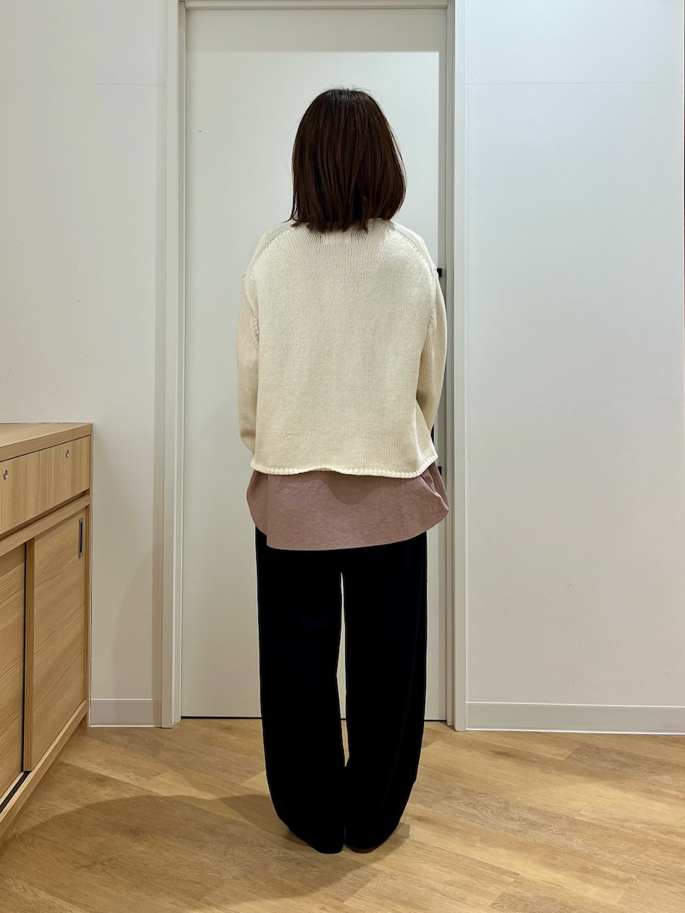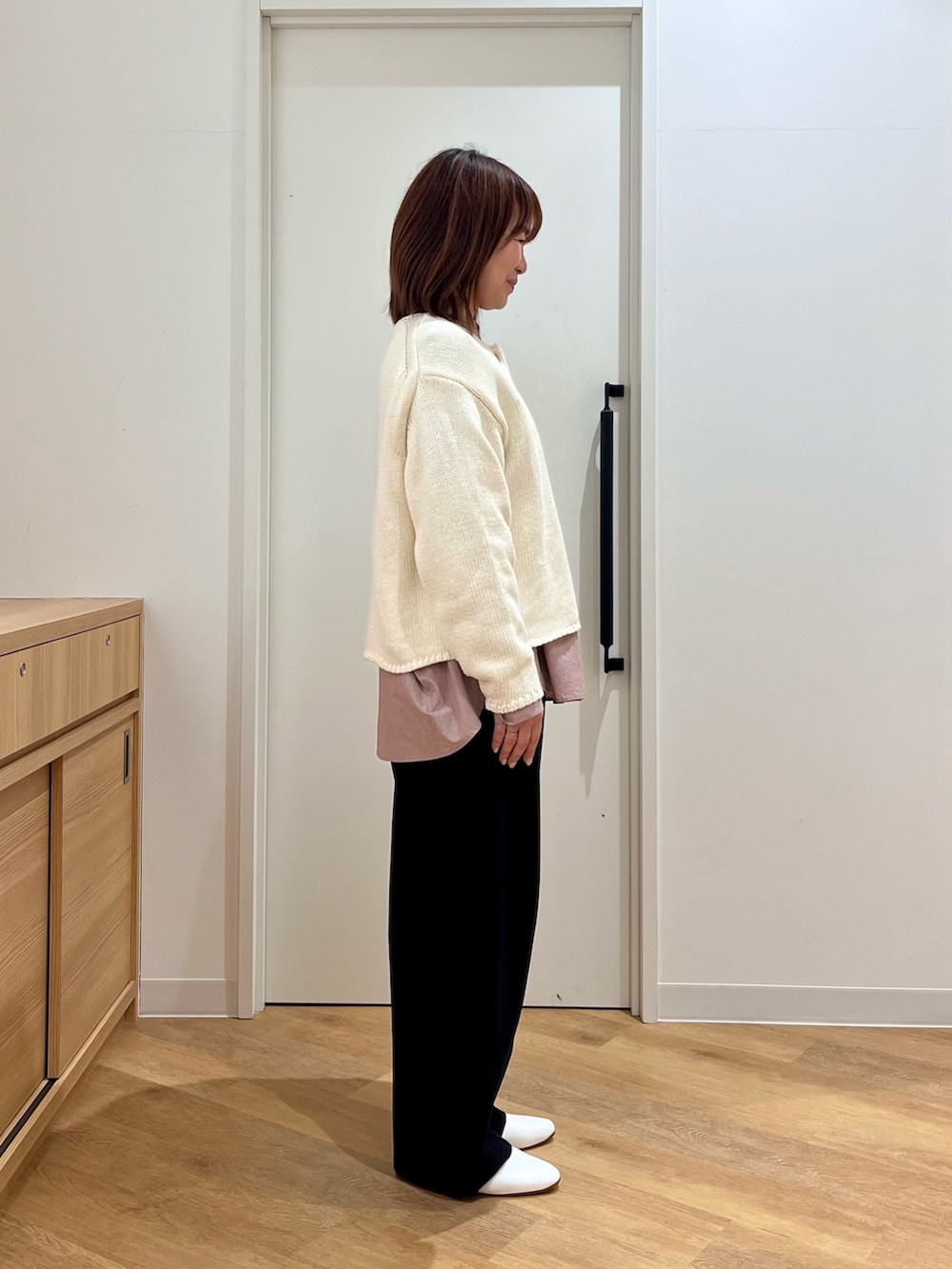 DOORSの『ウエストリボンカットカーブパンツ』は、スウェットのような楽な履き心地なのに、ジャケット合わせもできる品の良さが魅力。思わず近くにいたスタッフに良さを熱弁してしまったほどです🤭