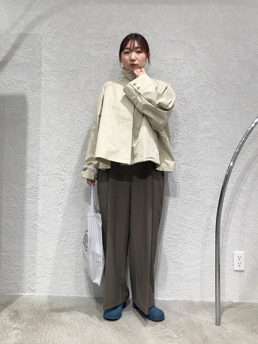 ちょうど良い高さのスタンドカラーも使いやすく、ロングコートより気軽に羽織れるのも嬉しいポイントです!
