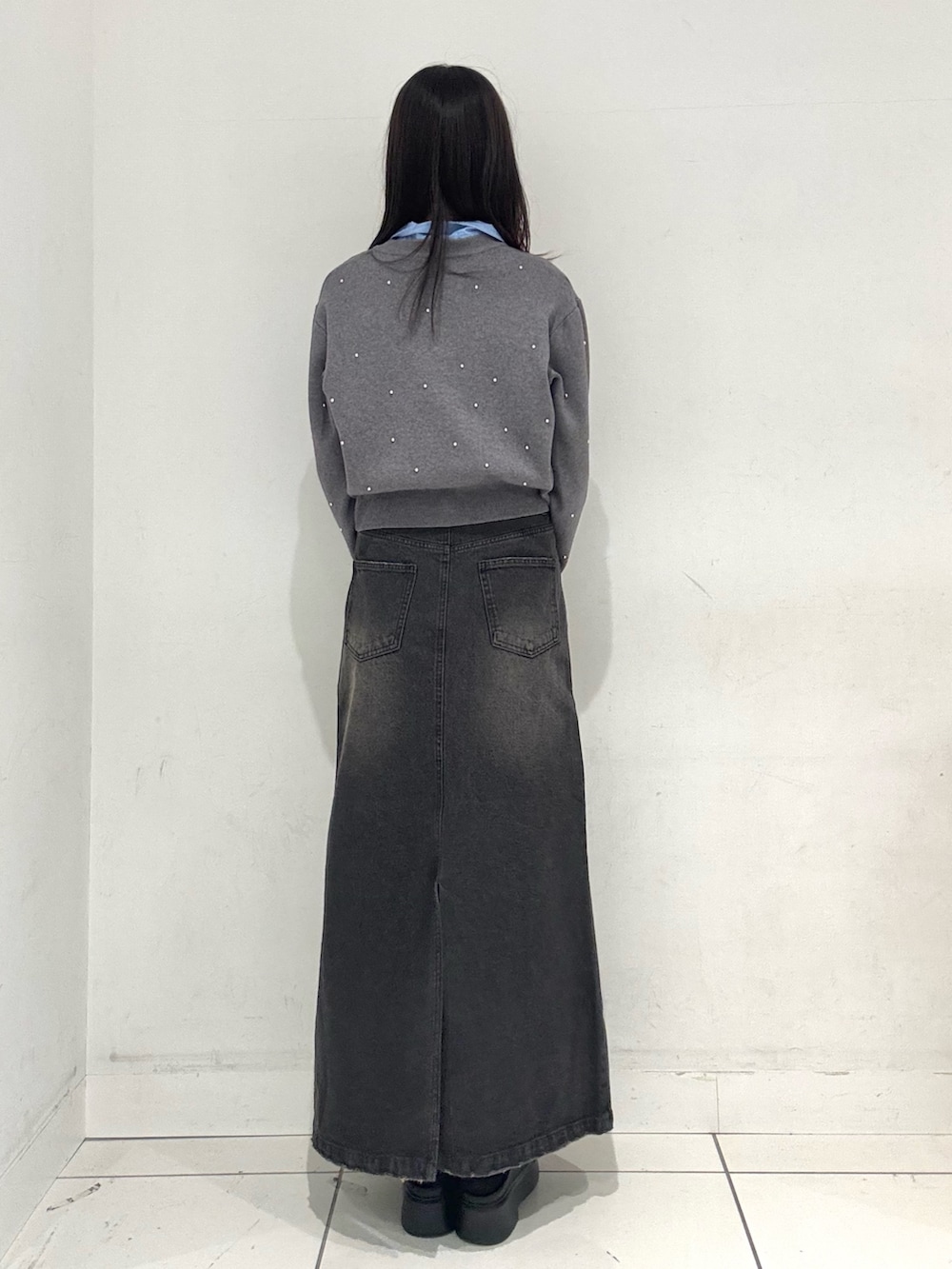 デニムスカートは、後ろにスリットが入っているので動きやすくなっております!