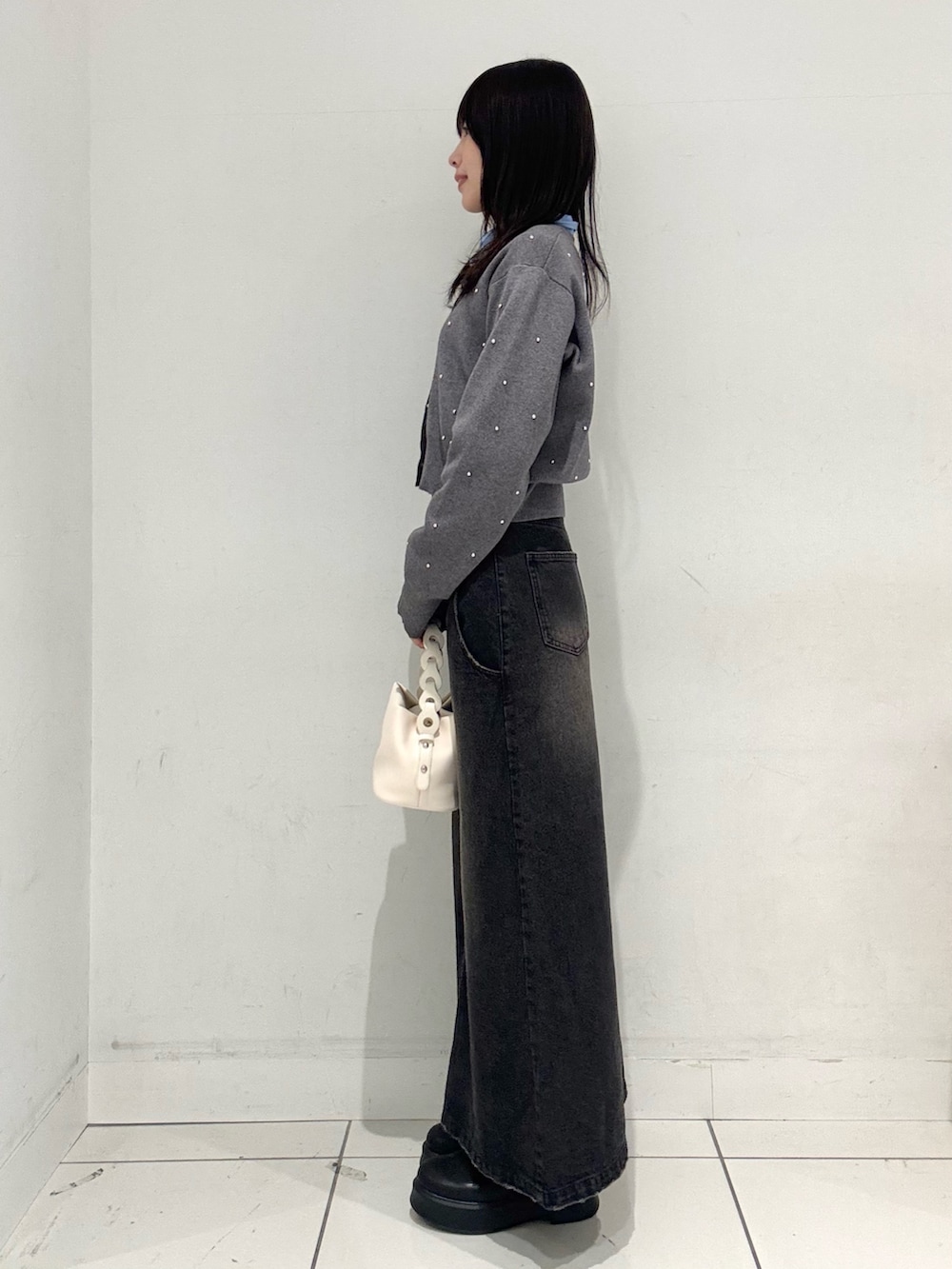 店頭で人気なカーディガンを使用したコーデです!