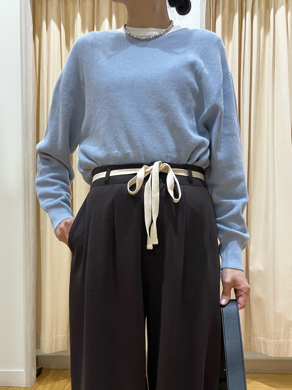 ウエストリボンカットカーブパンツ